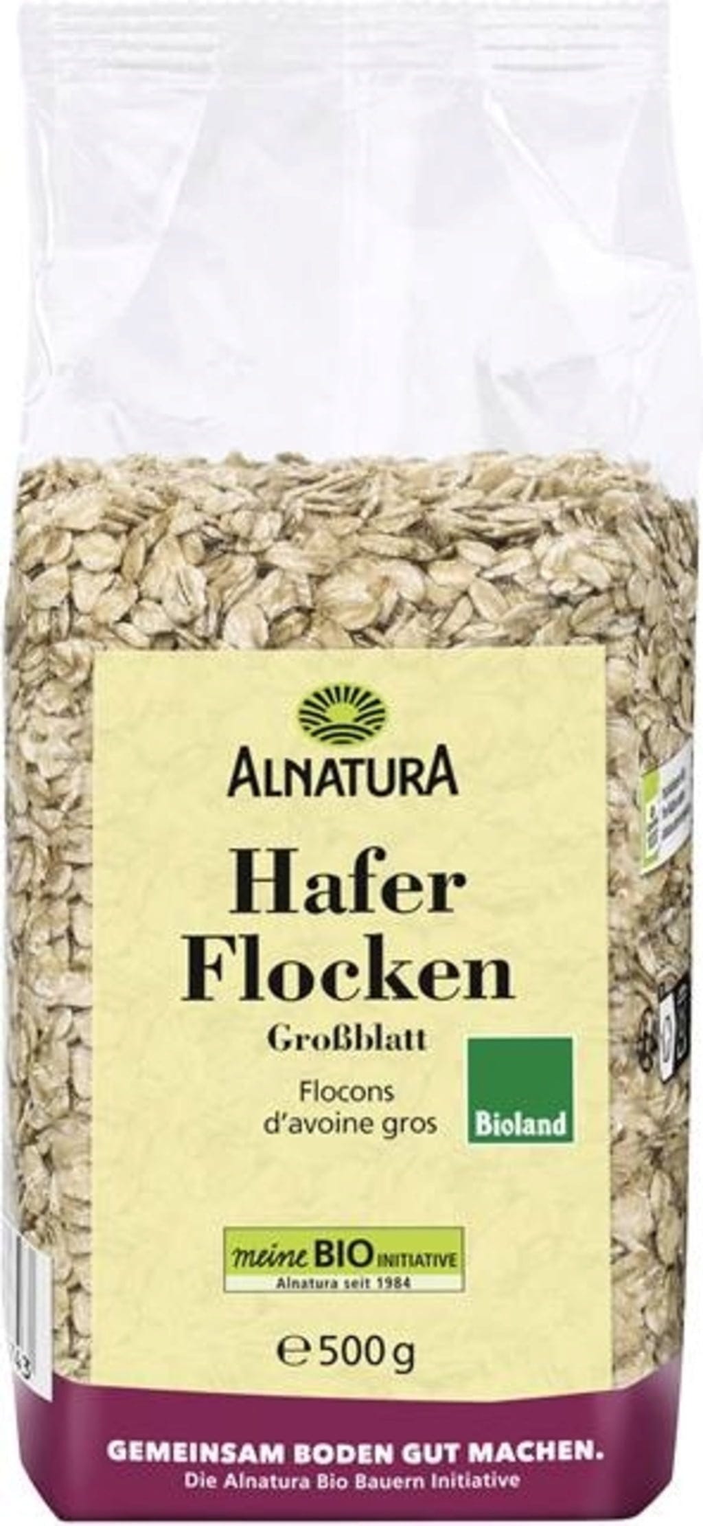 Klassikern inom frukostmüsli - Alnaturas storbladiga havreflingor från ekologiskt jordbruk är gjorda av hela havrekorn och smakar utmärkt i müsli och yoghurt, med mjölk, i sojadryck och mycket mer.