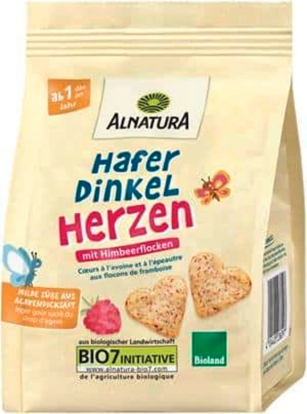Från ett års ålder kan Alnaturas havre- och dinkelhjärtan uppskattas av småbarn - och äldre syskon också: Tack vare den höga andelen fullkornshavremjöl och den milda sötman från agavesirap är de ekologiska kakorna ett värdefullt mellanmål. Hallonflingor retar redan den lilla gommen och tränar försiktigt smaksinnet. Dessutom är de små hjärtan bakade i precis rätt storlek för barnhänder.