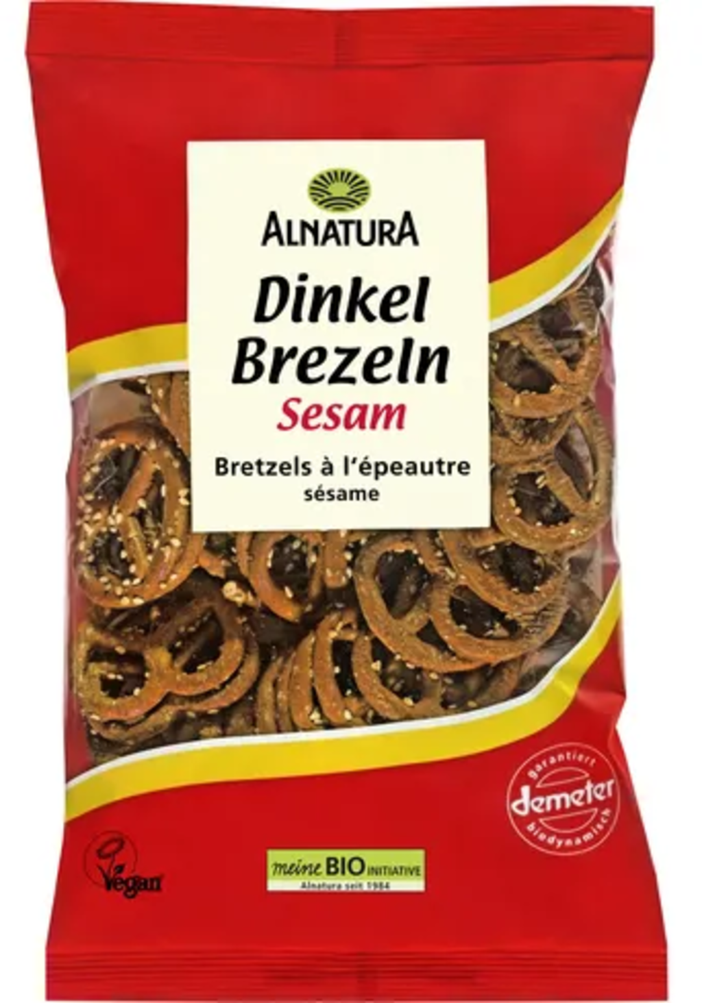 De veganska ekologiska speltkringlorna i Demeter-kvalitet från Alnatura är det perfekta snackset på fester eller när du tittar på TV. Kringlorna är krispigt bakade och strösslade med sesamfrön.