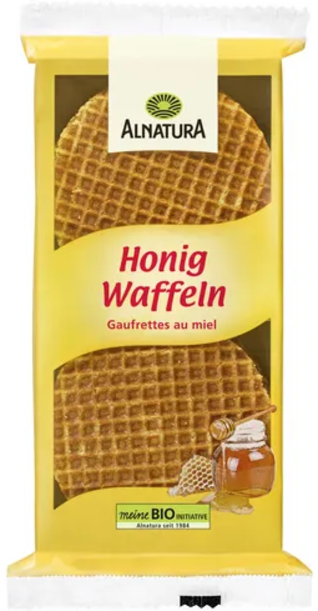 De ekologiska honungsvåfflorna från Alnatura smakar oemotståndligt gott och är perfekta som tilltugg till kaffe och te. Alla jordbruksingredienser i denna typiska holländska specialitet kommer från ekologiskt jordbruk.