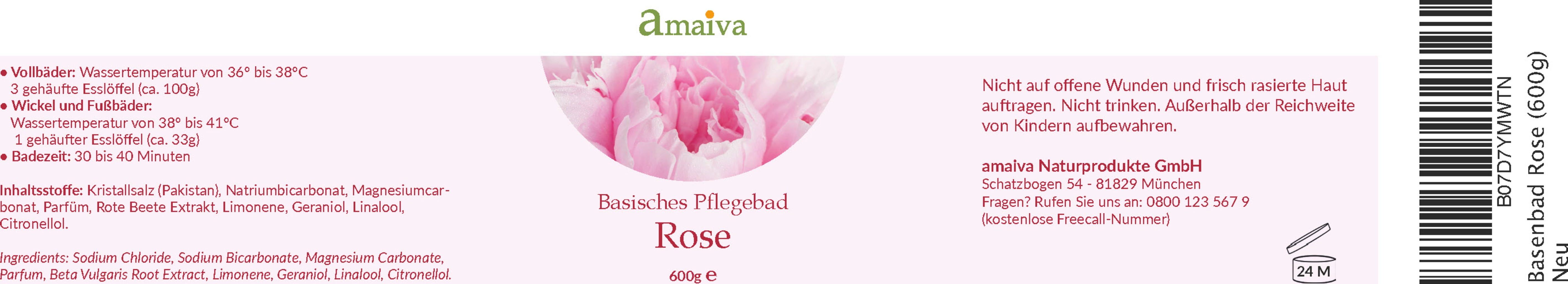 Amaiva Alkaliskt Badsalt - Basbad Rose, 600 g