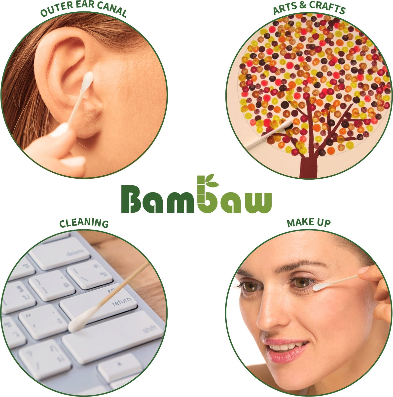 Bambaws tops tillverkas av bambus och bomull. De är extremt robusta och böjer sig inte. Som ett plastfritt alternativ till konventionella tops är de ideala för den dagliga hygienen, men kan även användas för rengöring eller för att korrigera smink.