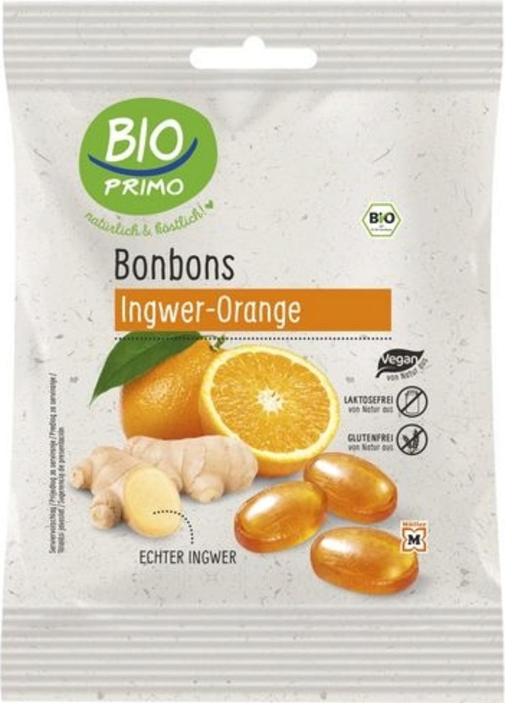 BIO PRIMO Ekologiska Bonbons, Ingefära-Apelsin (60 g)