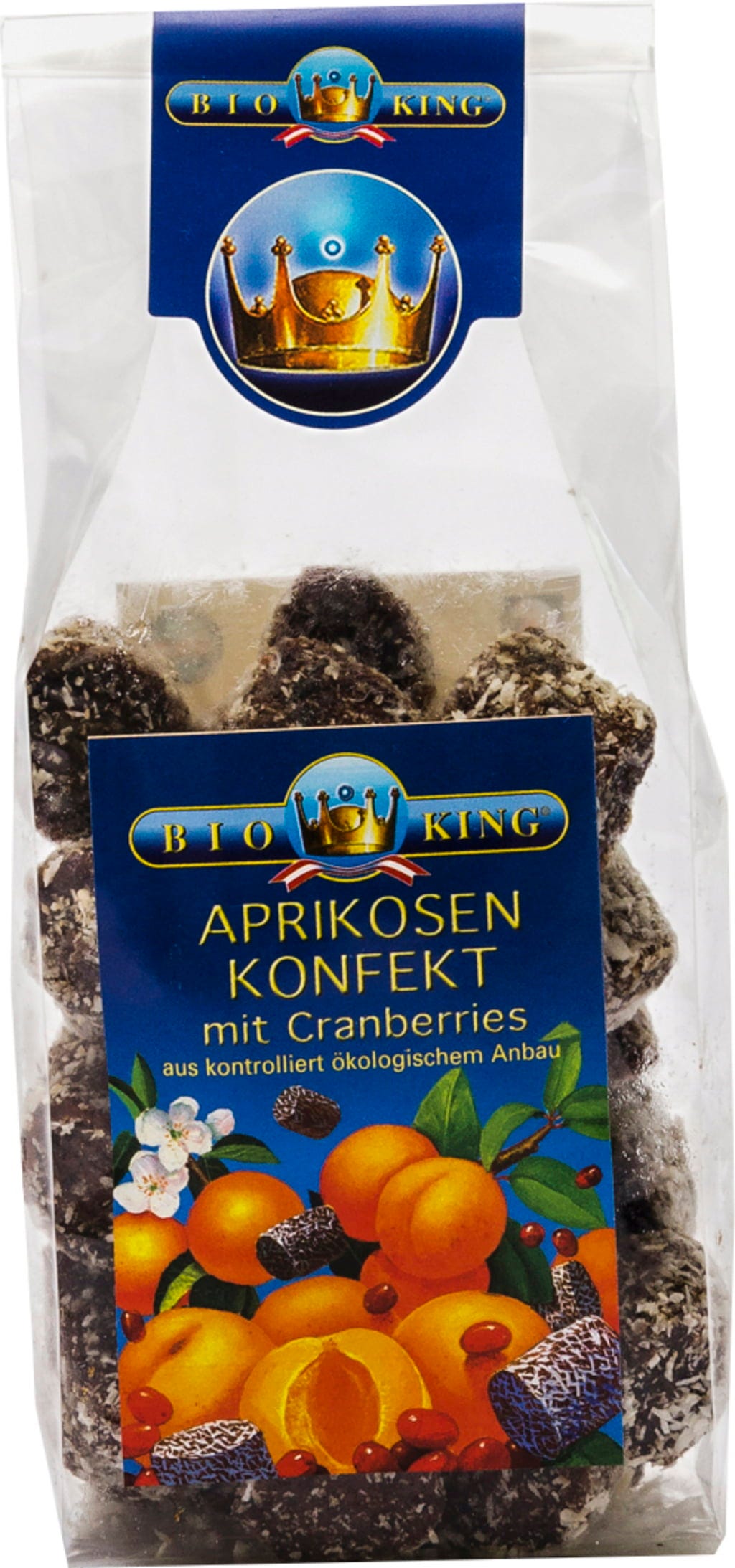 Det mjuka aprikoskonfektet är förfinat med syrliga tranbär och exotiska kokosflingor, och passar perfekt för råkonsumtion eller som en godbit för stunden.