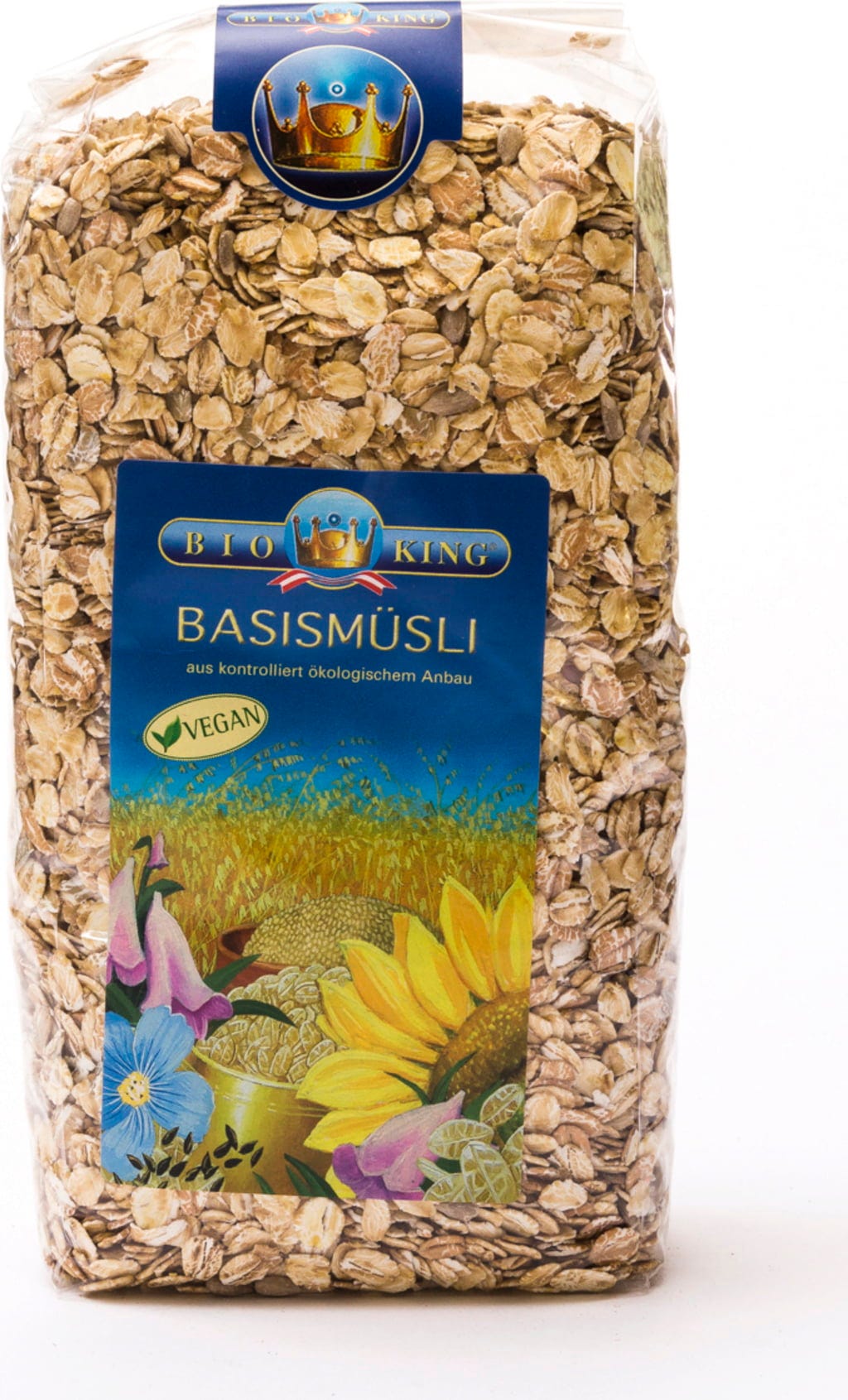 Grundblandningen av müsli innehåller en hög andel havregryn och kompletteras med andra lättsmälta spannmål som råg, spelt och korn. Blandningen innehåller också solrosfrön, sesamfrön och bruna linfrön.