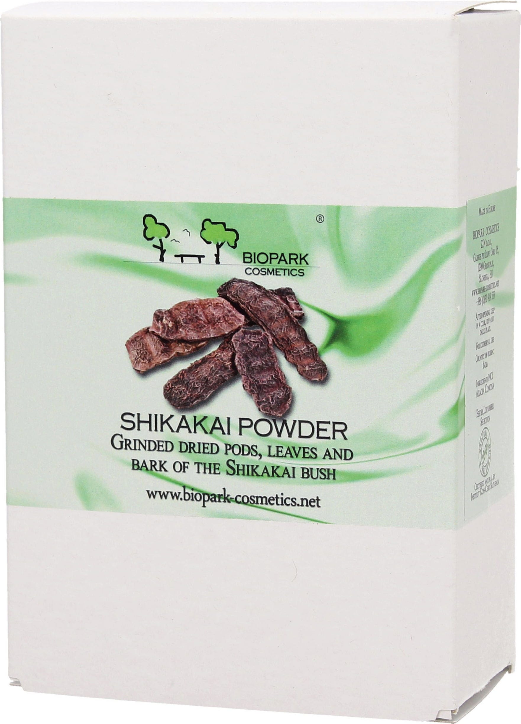Detta växtpulver från Biopark utvinns från malda skal, blad och bark av shikakai buske från Indien. Det har en brun färg och en träig doft. Shakakai pulver har utmärkta rengöringsegenskaper och är lämplig för hårvård, men inte skummar inte så mycket.