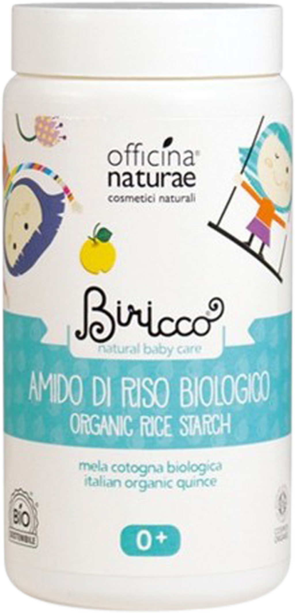 Risstärkelsen av Biricco är en ren och naturlig produkt, berikad med extrakt av ekologisk kvitten och malva. Den är idealisk för ett milt och lugnande bad. Vid irriterad eller rodnande hud på grund av överdriven svettning eller blöjbyte, ger den ett behagligt lugn.