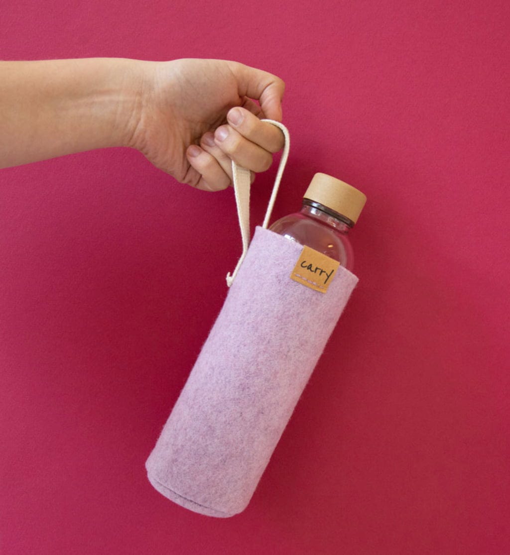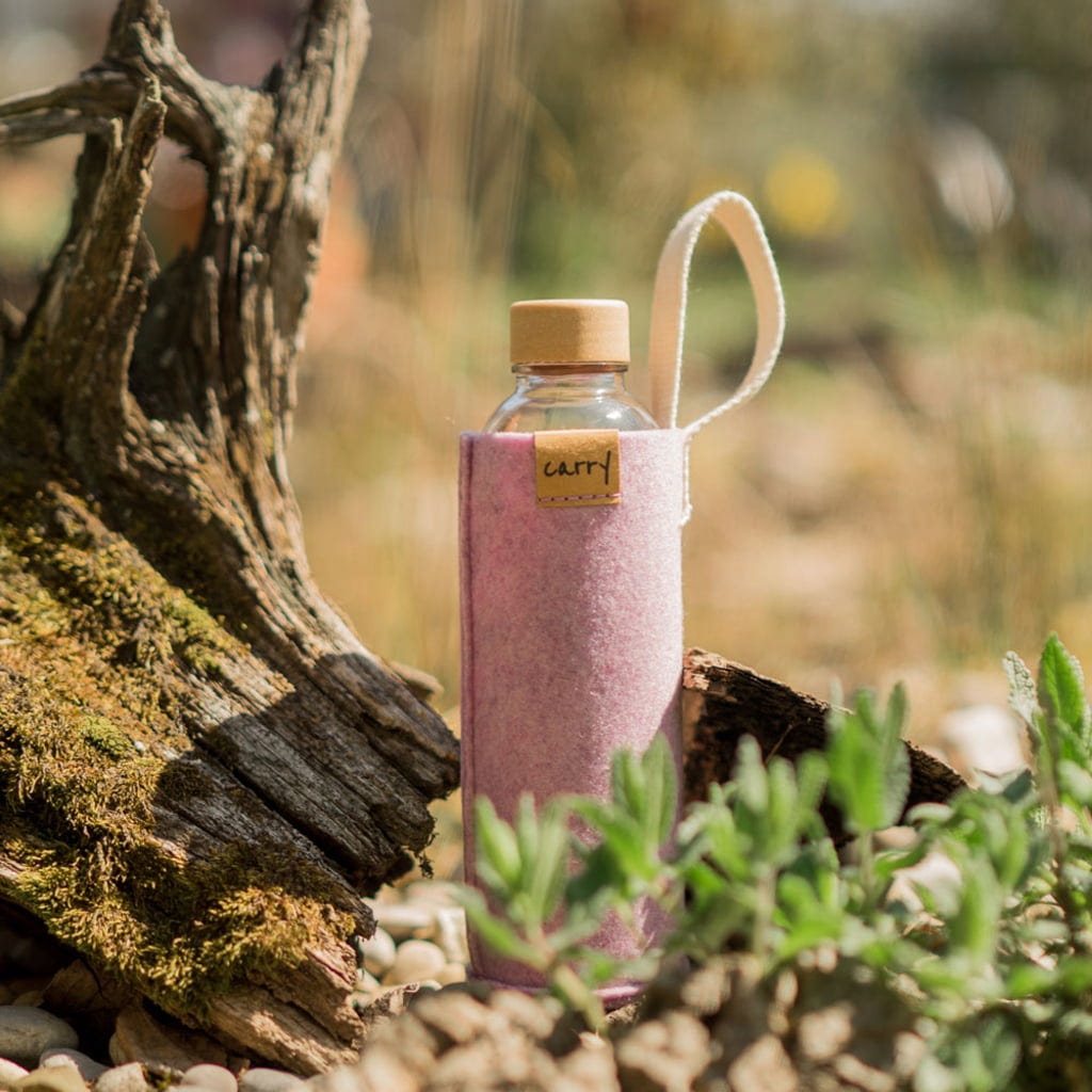 Väl skyddad, din vattenflaska är alltid med dig! Det handsydda filtöverdraget av återvunna PET-flaskor är inte bara robust och praktiskt utan har också ett naturligt utseende. En bärslinga i bomull gör att vattenflaskan är lätt att bära och blir en ständig följeslagare - oavsett om du är ute på en promenad, en kort vandring eller på lekplatsen.