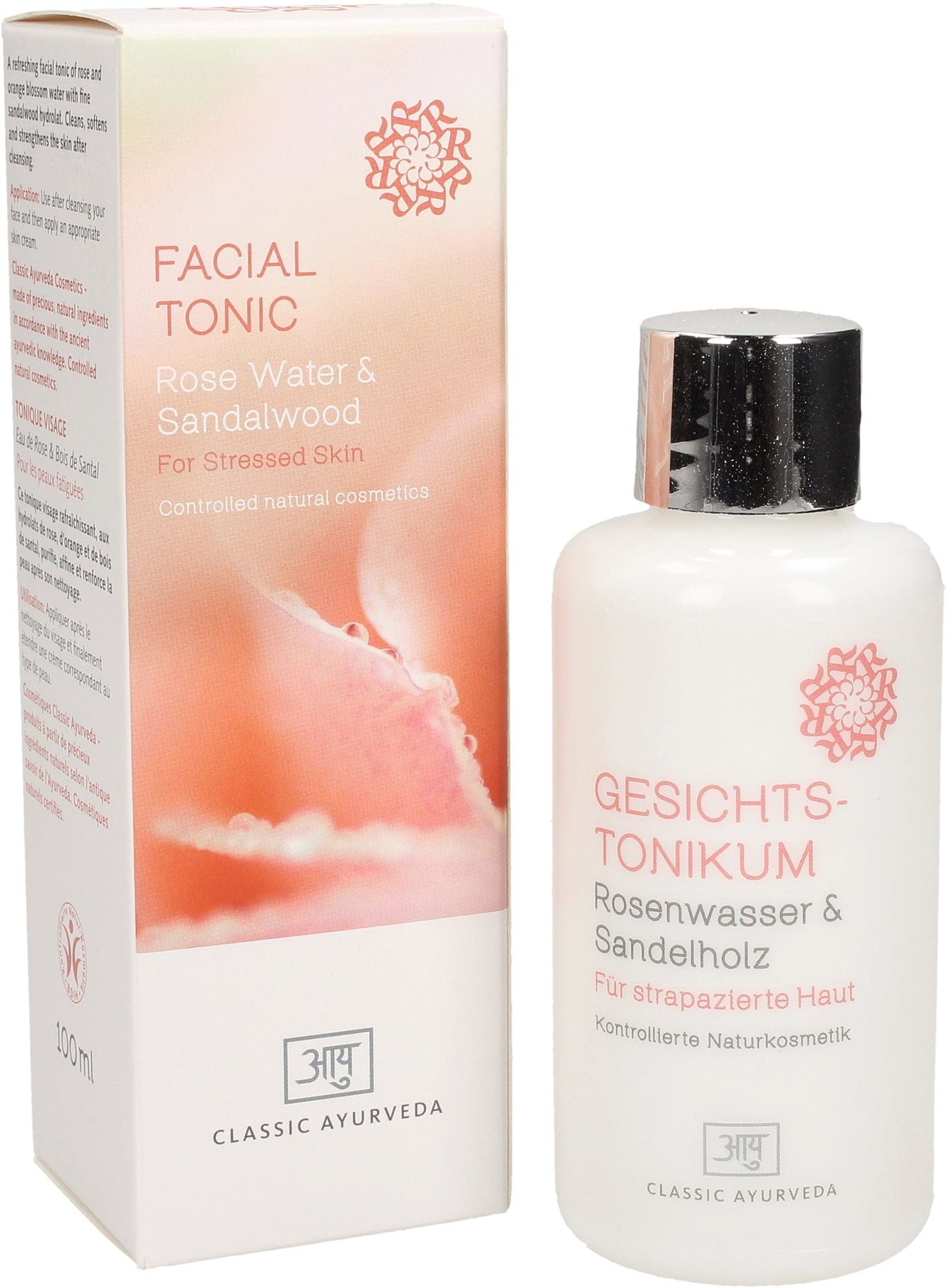 En ren, naturlig ansiktsvatten gjord av ros- och apelsinblomsvatten och fin sandelträhydrola Uppfriskande blomvatten i kombination med ett extrakt av amlafrukt klargör, förfinar och stärker huden efter ansiktsrengöring. En fräsch, blommig doft av ros, apelsin och sandelträ.