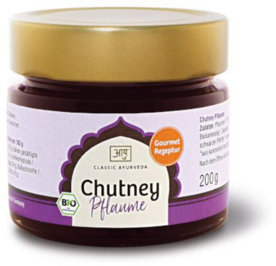 Ett fruktigt och exotiskt chutney med ekologiska plommon och finstämda ayurvediska kryddor.