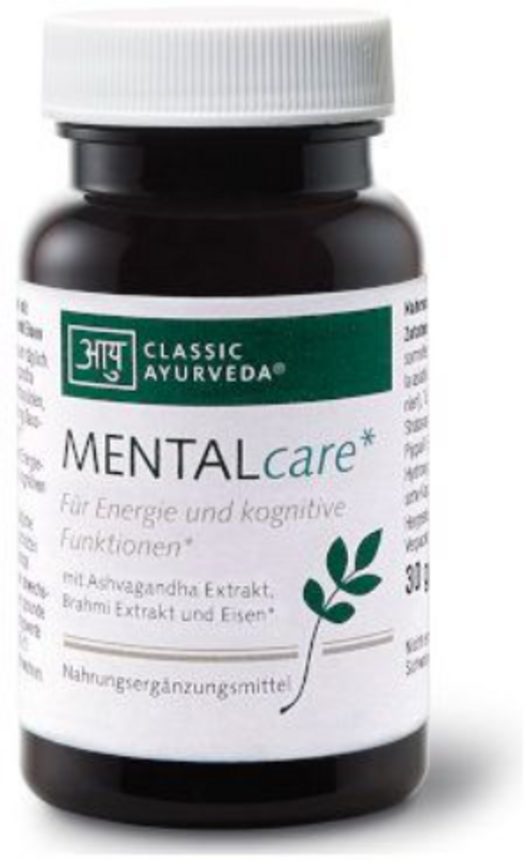 MENTALcare-kapslarna från Classic Ayurveda kombinerar ett urval indiska växtextrakt med spårämnet järn. Recepturen bygger på ashwagandha, brahmi och mandukaparni, kompletterat med tulsi och shatavari. För att avrunda kompositionen används även pippalipulver.