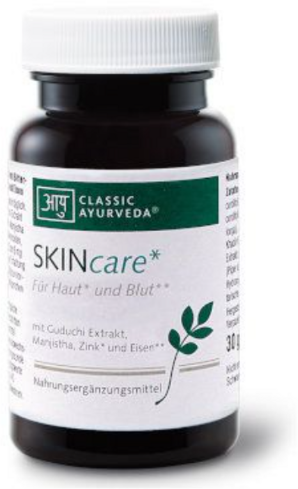SKINcare-kapslarna från Classic Ayurveda kombinerar mineraliska spårämnen med traditionella växtbaserade ingredienser. Recepturen innehåller manjistha, guduchi och amla samt gurkmeja, lakritsrot och tulsi. Sammansättningen är utvecklad för att komplettera den dagliga kosten.
