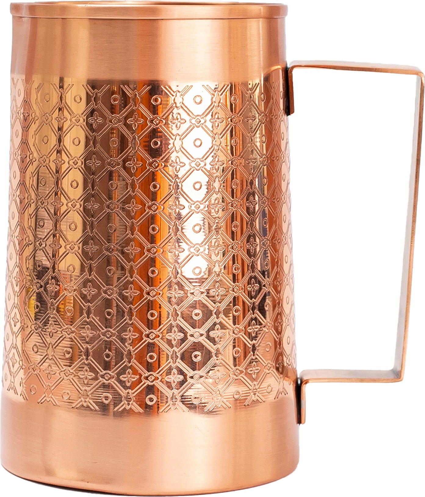 Denna kopparkanna är perfekt för att stilrent servera vatten utan kolsyra. Eller varför inte använda den som en vacker blomvas? Kannan är gjord av livsmedelssäkert koppar och är kärleksfullt handgjord i Indien. Den kombinerar modern design med traditionellt hantverk. Utsidan är förseglad med ett livsmedelssäkert lack och insidan är naturlig för att ge alkaliskt vatten.