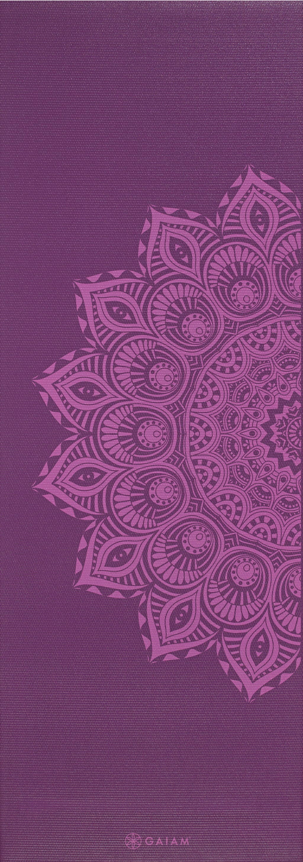 Med GAIAM Purple Mandala yogamatta får du en idealisk bas för dina övningar, dekorerad med ett vackert mandalamönster. Den 6 mm tjocka mattan ger extra vaddering som skyddar dina leder och gör att du känner dig bekväm i varje position. Den greppvänliga och halksäkra ytan ser till att du står stadigt under hela passet. Yogamattan i mjukt lila är dessutom fri från latex och skadliga ftalater.