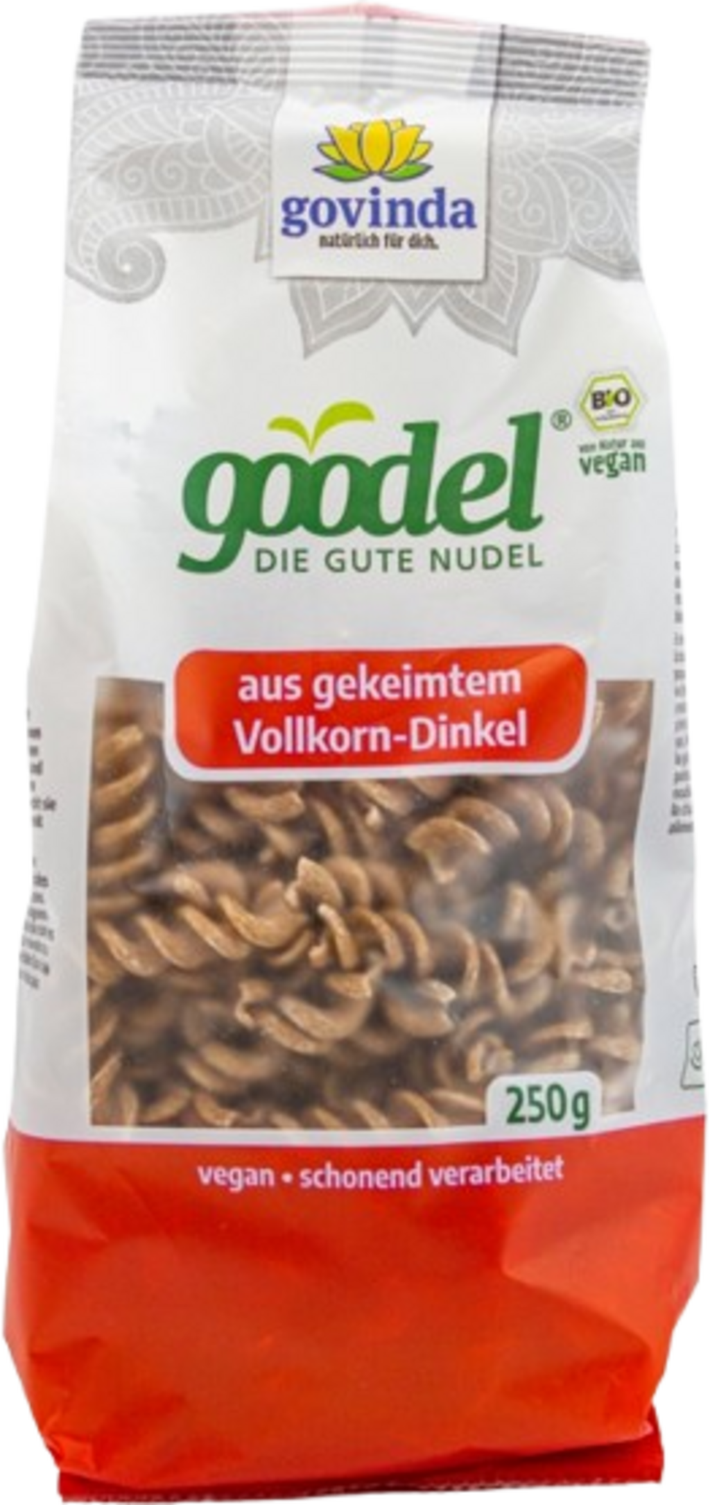 Dessa Goodels är gjorda av groddad spelt - det är det som gör denna råa matpasta så speciell. De innehåller mer än konventionell pasta och gör därför varje måltid speciell.