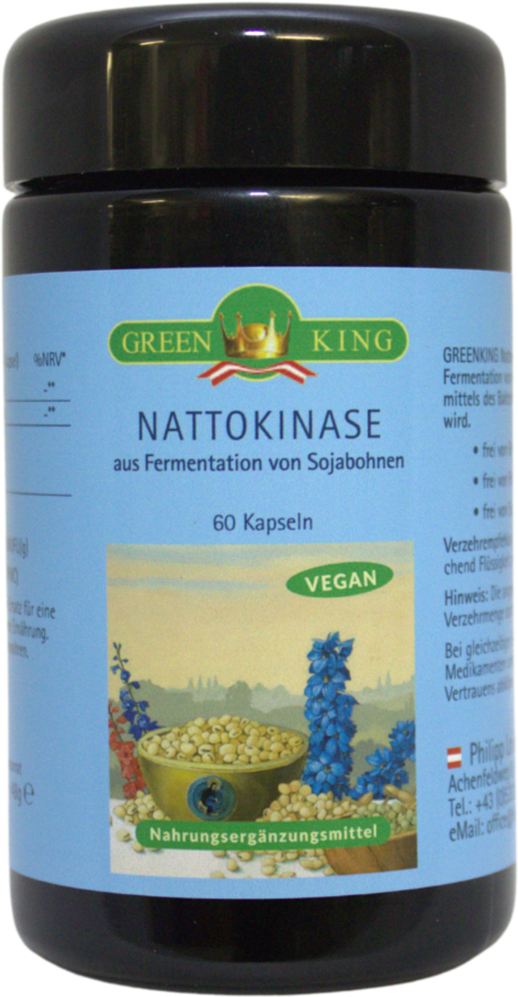 Nattokinas är ett enzym som produceras under fermenteringen av sojabönor med hjälp av bakterien Bacillus subtilis. Kapslarna är helt fria från genteknik, bekämpningsmedel och tungmetaller och är dessutom vegan- och sojafria.