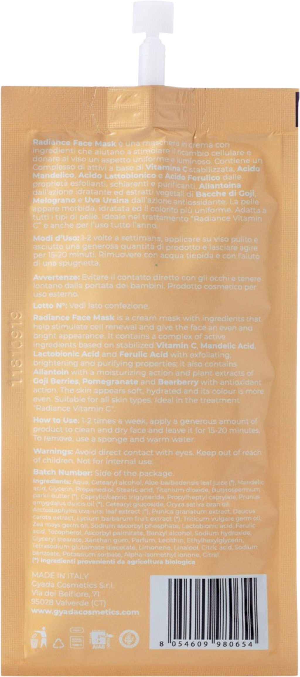 Tillverkare: GYADA COSMETICS S.R.L., Via Dei Belfiore 71, 95028, Valverde (CT), Italien, info@gyadacosmetics.com, www.gyadacosmetics.com