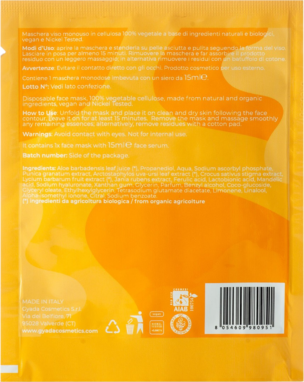 Denna veganska engångsmask med C-vitamin, mandelsyra, laktobionsyra och ferulsyra utjämnar hudens hudfärg. Dessutom kompletteras den med värdefulla växtextrakt från granatäpple, gojibär och bärdruvor, som stimulerar cellförnyelse, minskar föroreningar och säkerställer en strålande och hälsosam hy.