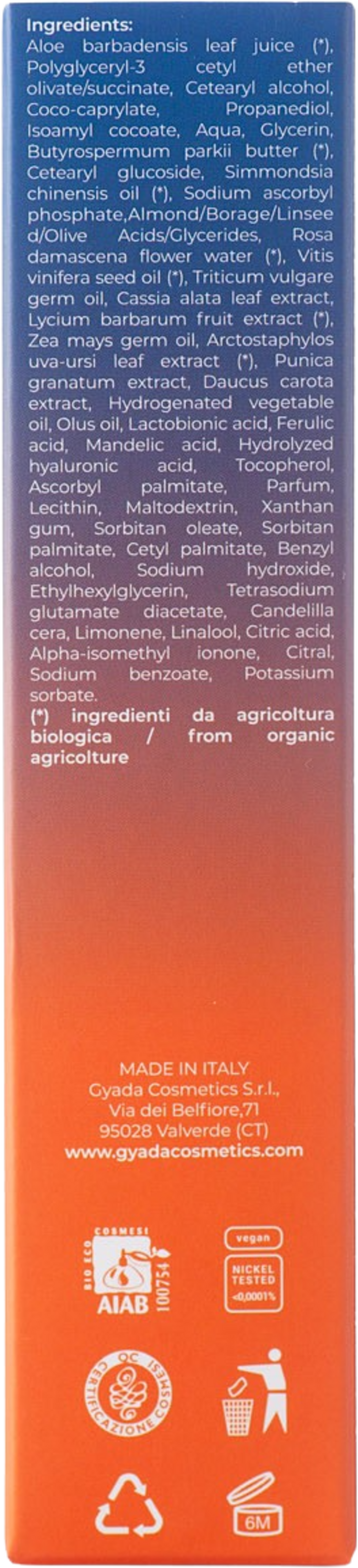 | Tillverkare: | GYADA COSMETICS S.R.L., Via Dei Belfiore 71, 95028, Valverde (CT), Italien, info@gyadacosmetics.com, www.gyadacosmetics.com |