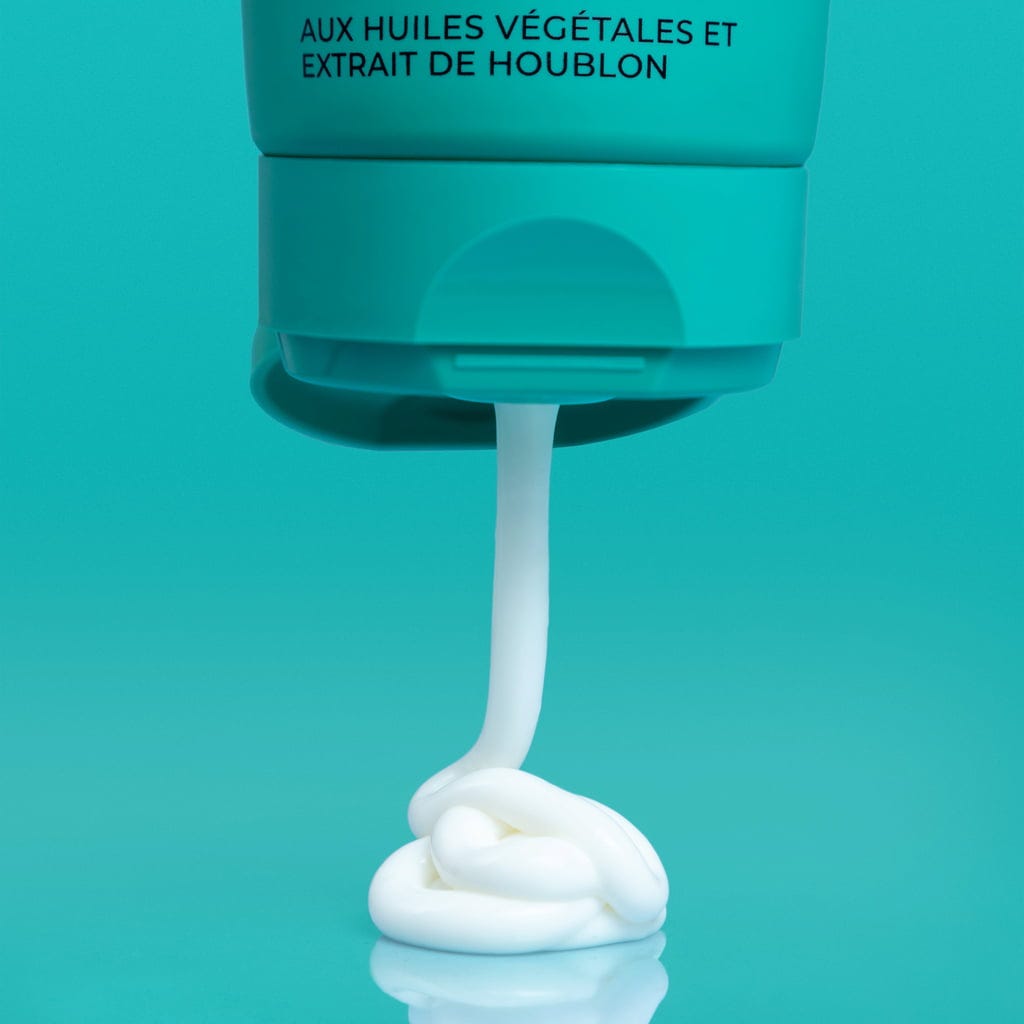Produkten innehåller en blandning av vegetabiliska oljor, aloe vera juice och extrakt av humle och kardborre som ger mjukhet utan problem eller irritation.