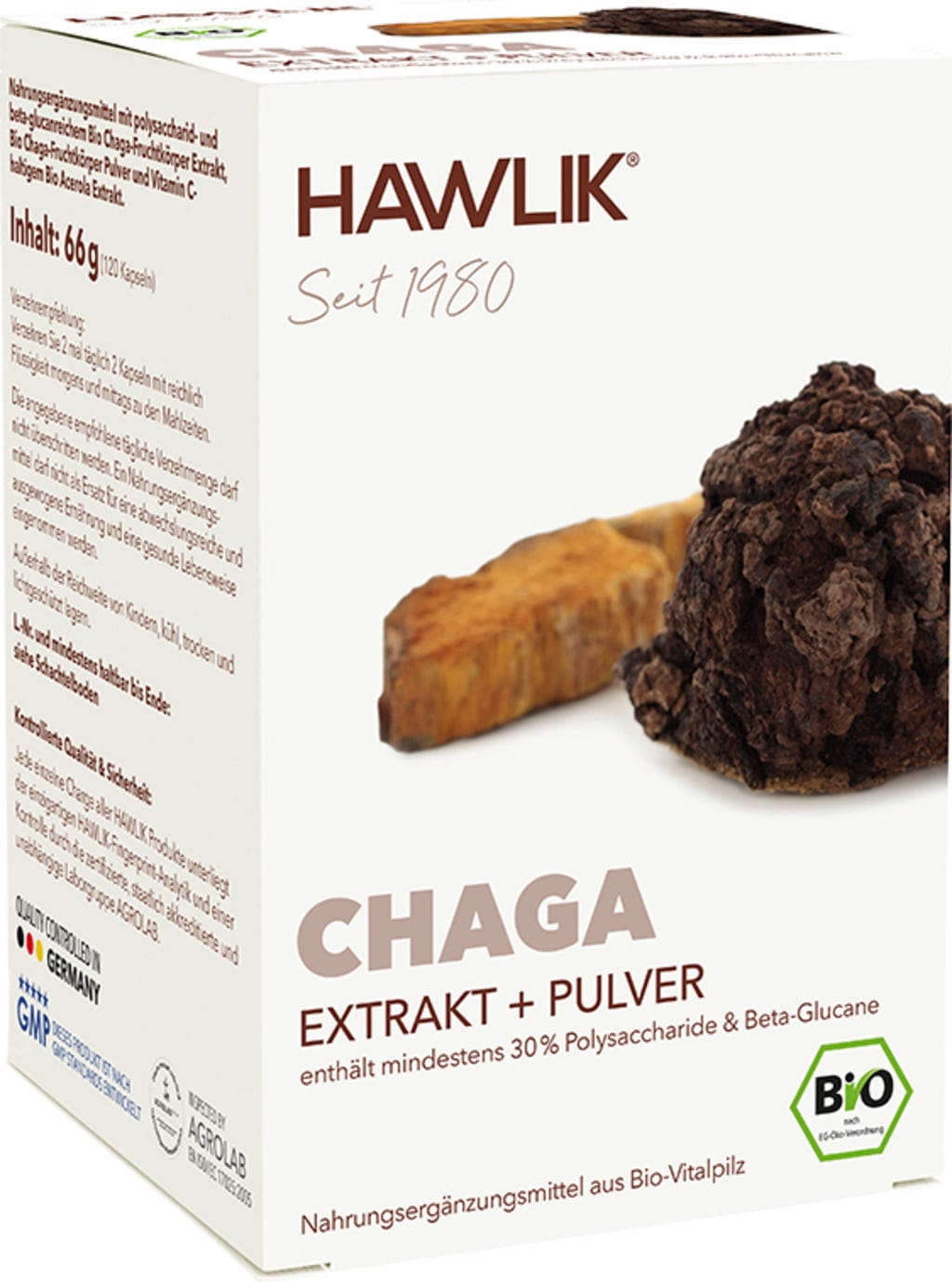 Hawlik Ekologiskt Chaga-Extrakt + Pulver, 120 Kapslar