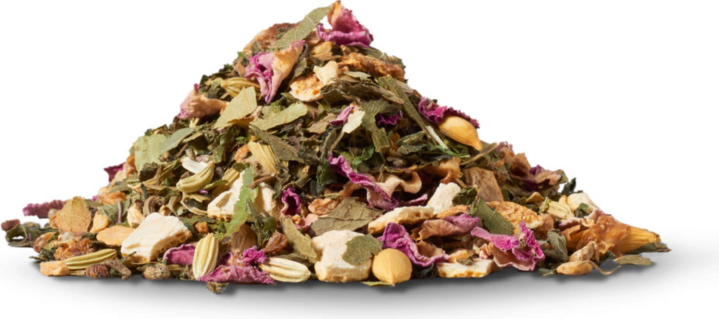 20 % Blad av nässlor, 18 % Ingefära, Citronskal, Apelsinskal, Björkblad, Fänkål, Kardemumma, Rosenblad, Pepparmint blad, Söta björnbärsblad[1]