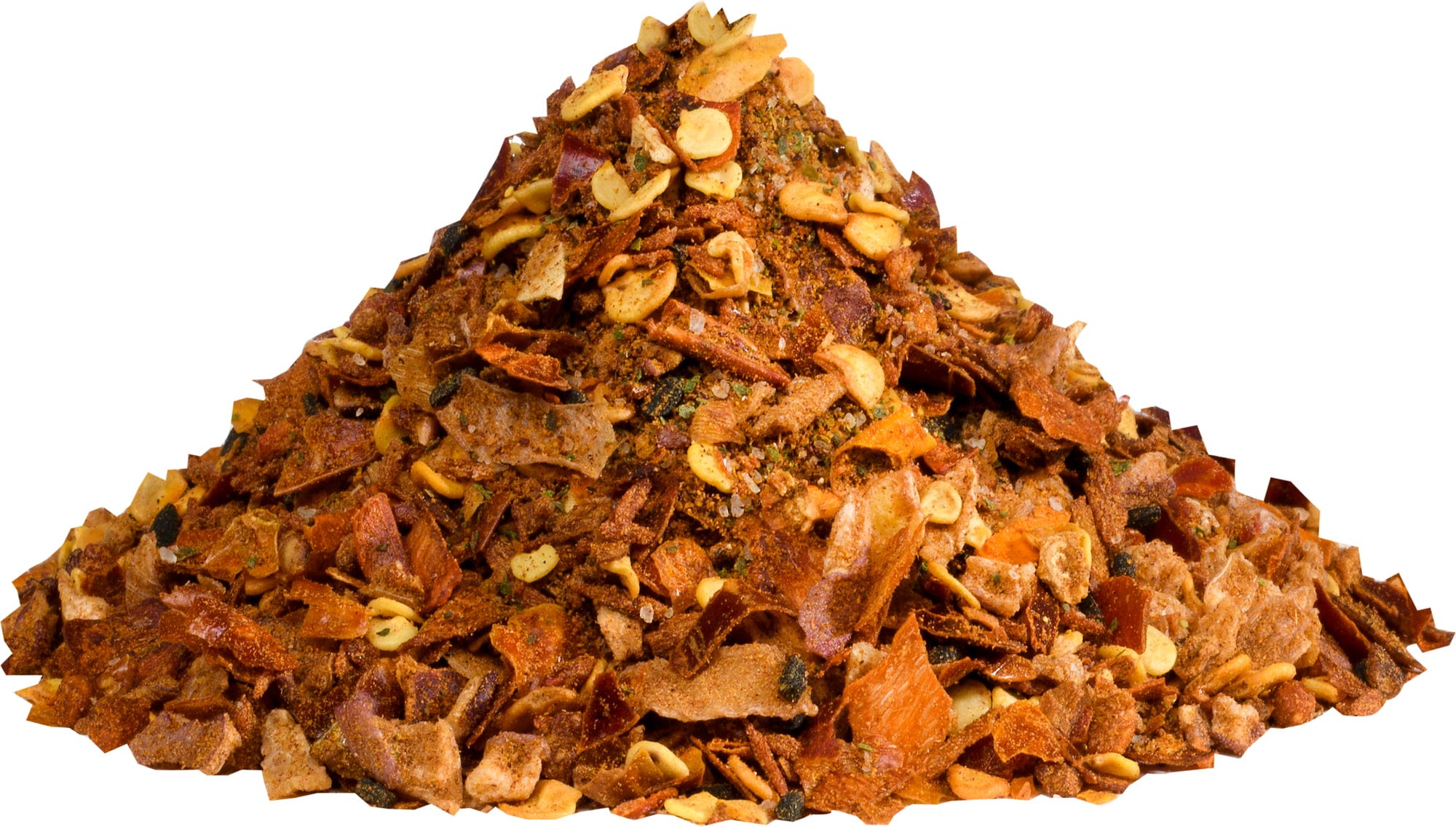 Chilli[1], Bergsalt, Chilli mald[1], Tomatflingor[1] (Koncentrat av tomatpuré[1], Majsstärkelse[1]), Röd lök[1], Tomater[1], Paprika[1], kummin[1], Svart kummin[1], Hibiskusblommor[1], Nanamint[1]