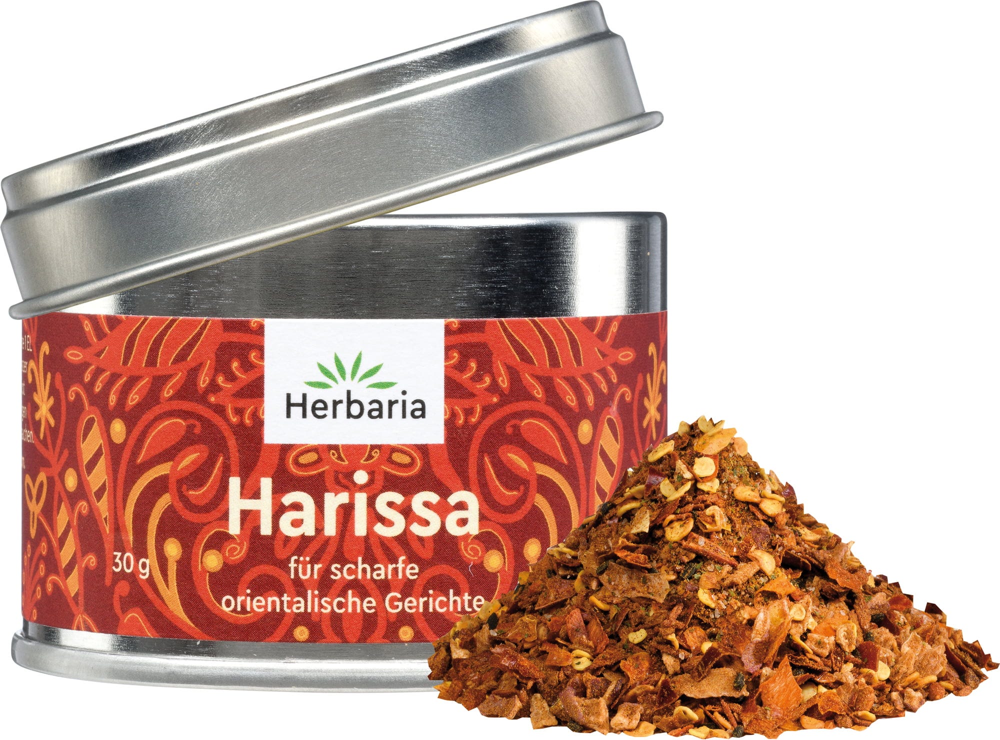 Mellanöstern är känt för sitt färgstarka, grönsaksrika, levantinska kök. Harissa står för orientalisk kryddighet på högsta nivå. Den intensiva chilikryddigheten balanseras med den nötaktiga noten av svart spiskummin och fulländas med fruktiga aromer av paprika och tomater. Hibiskusblommor och uppfriskande nanamynta skapar en rundad finish. Perfekt för kryddiga orientaliska soppor, grytor, vegetariska och kötträtter. Även perfekt för dips och såser.