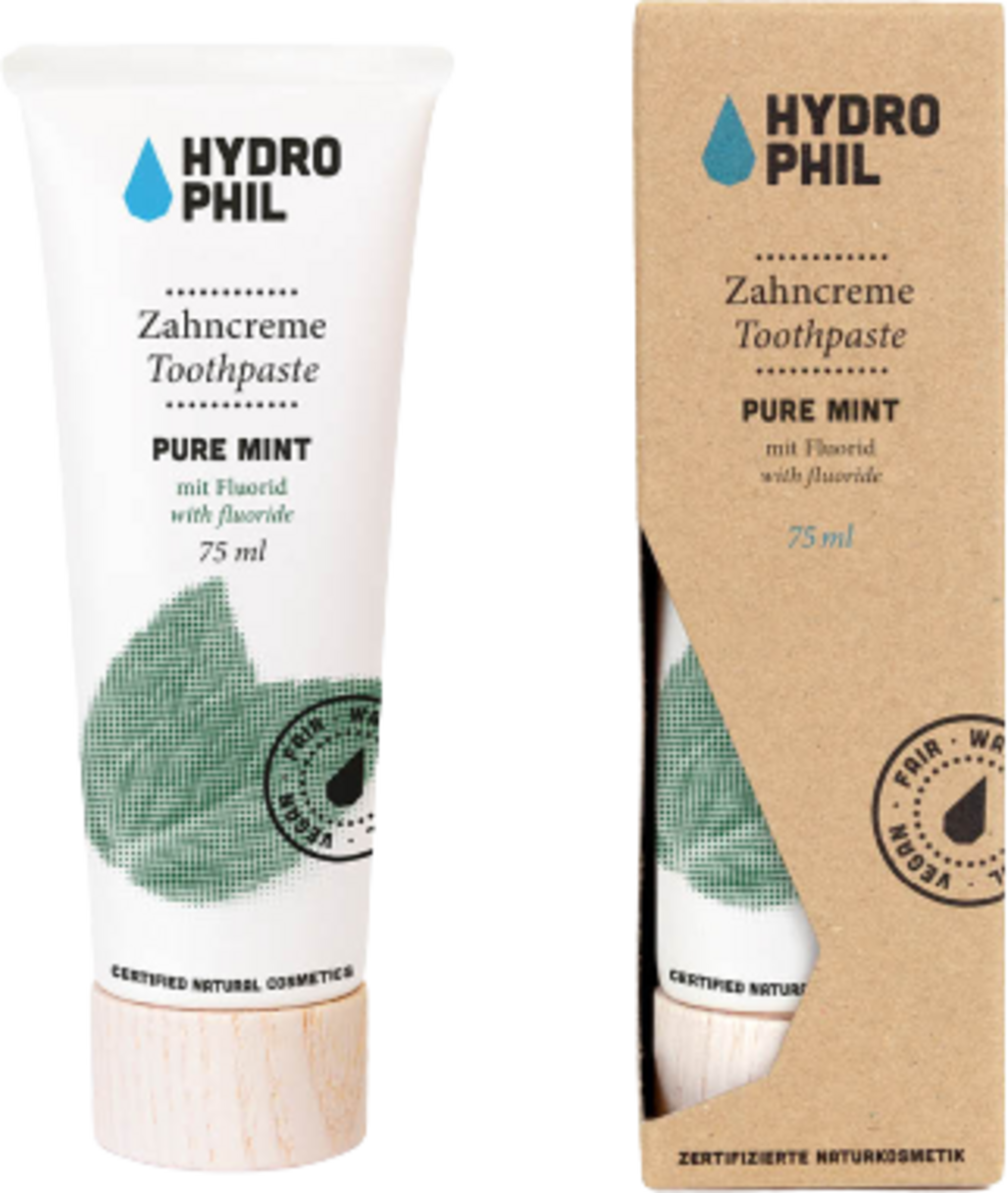 • Tandkräm Pure Mint: naturlig tandkräm med uppfriskande pepparmint för frisk andedräkt och en hälsosam munflora. Förpackningen består till 95% av förnybara resurser.