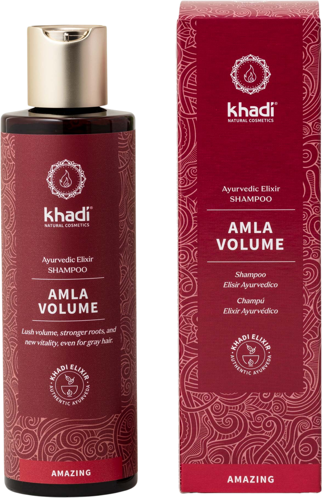 Amla Volume Shampoo rengör skonsamt hår och hårbotten och har stärkande egenskaper. Tack vare khadi-elixiret är det särskilt vårdande och kan även användas på grånande hår. Det innehåller också en kombination av C-vitaminrik amla, antioxidant tulsi och bhringaraj, vilket ger håret styrka och kropp.