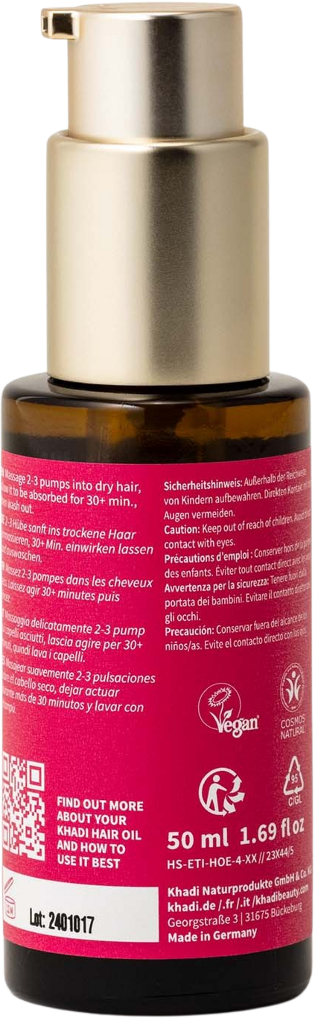 - Alternativt kan oljan också borstas försiktigt in med khadi-hårvårdborsten - de speciella naturliga borsten arbetar håroljan djupt in i håret.