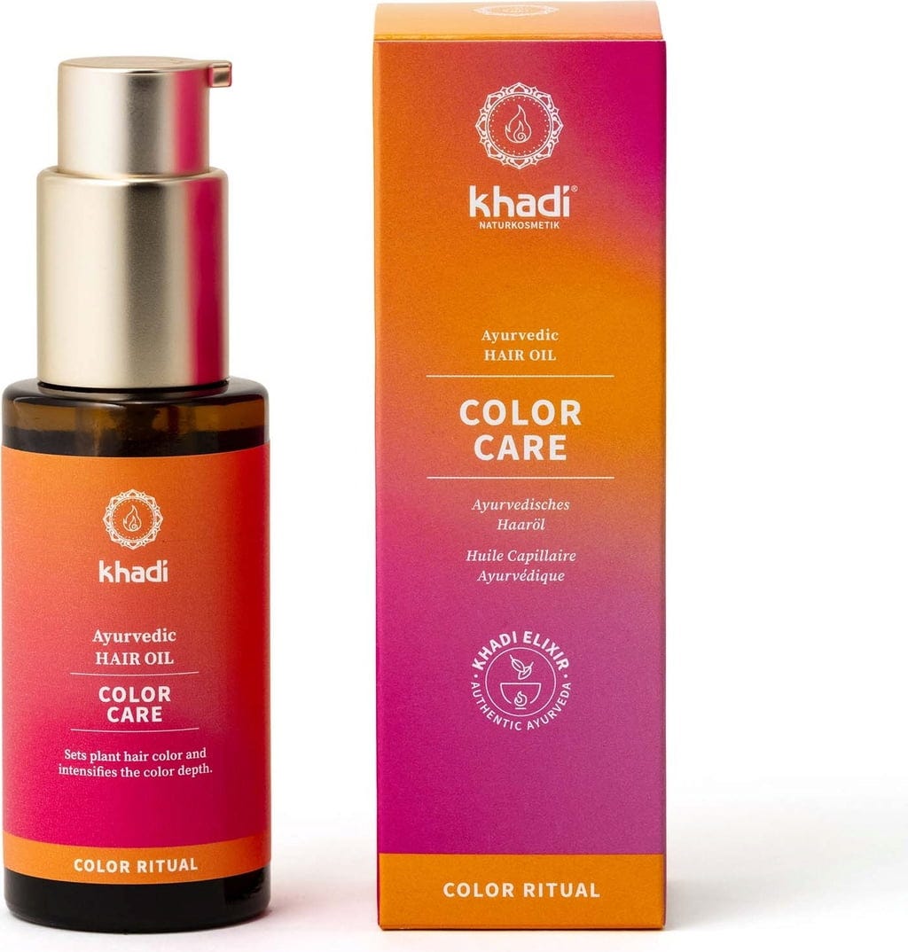 Color Care Hair Oil från khadi intensifierar och fixerar färgpigmenten i örtfärger på ett naturligt sätt tack vare dess unika formulering. Växtextrakten lindar runt varje hår som en skyddande film och skyddar färgen från värme, sol och mekanisk stress. Samtidigt vårdas håret med senna-, centella- och broccolifrön utan att tyngda ner det. För denna elixir kokas utvalda ayurvediska medicinska örter försiktigt över öppen eld.