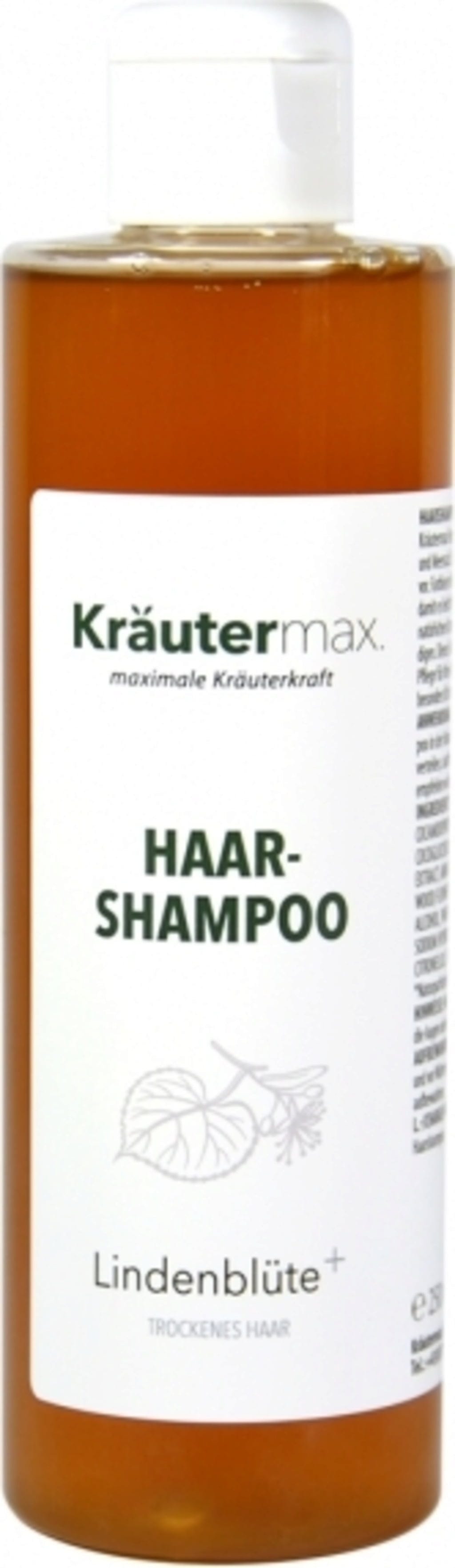 Kräutermax Hair Shampoo Linden Blossom plus innehåller extrakt av lindblomma, arnica, henna och havssalt.
