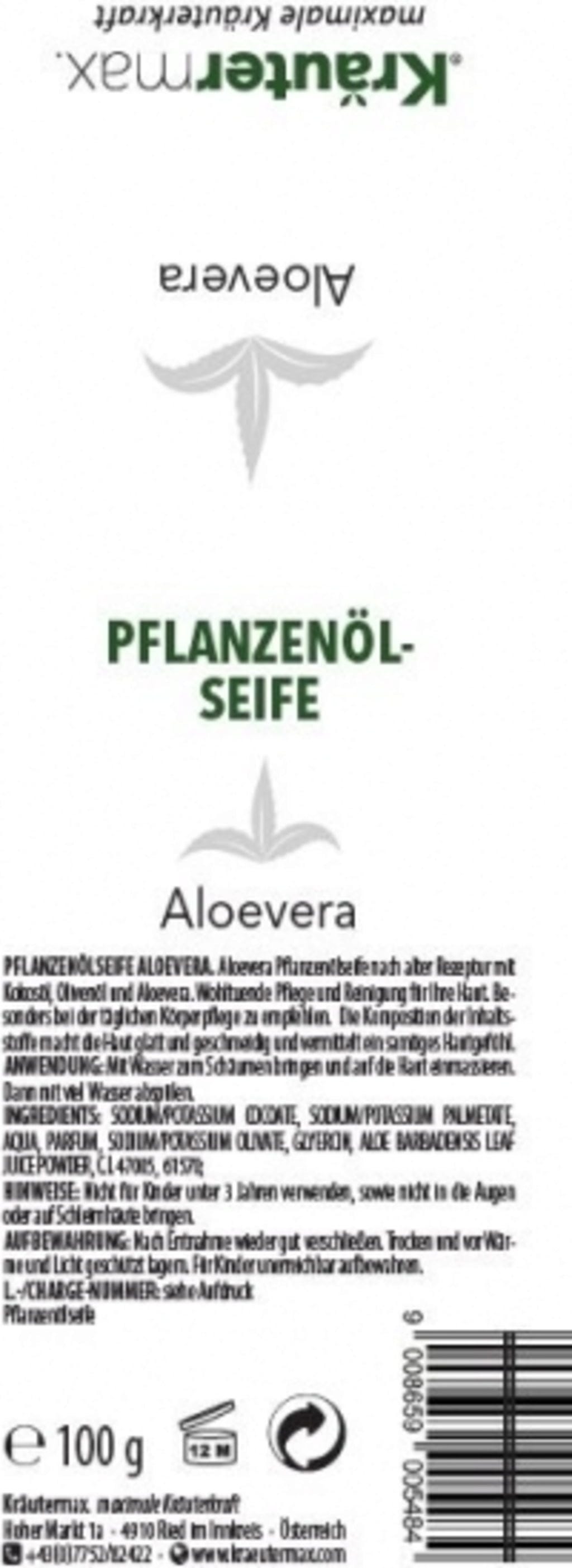 Kräutermax Aloe Vera tvål är en vegetabilisk oljetvål som tillverkas enligt ett gammalt recept med kokosolja, olivolja och aloevera.