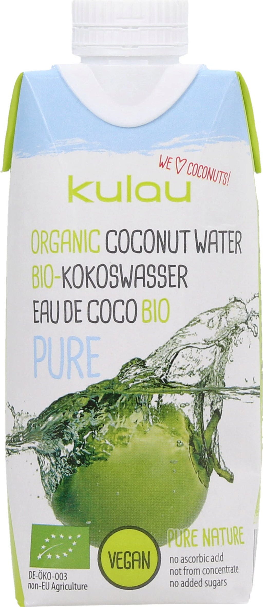 KULAU kokosvatten från unga kokosnötter är det bästa alternativet till gröna drickkokosnötter. Kokosvattnet bearbetas särskilt skonsamt med de senaste metoderna och värms bara upp i några sekunder. Det betyder att det inte bara smakar nästan som om det var färskt från palmen, utan alla värdefulla ingredienser är också optimalt bevarade.
