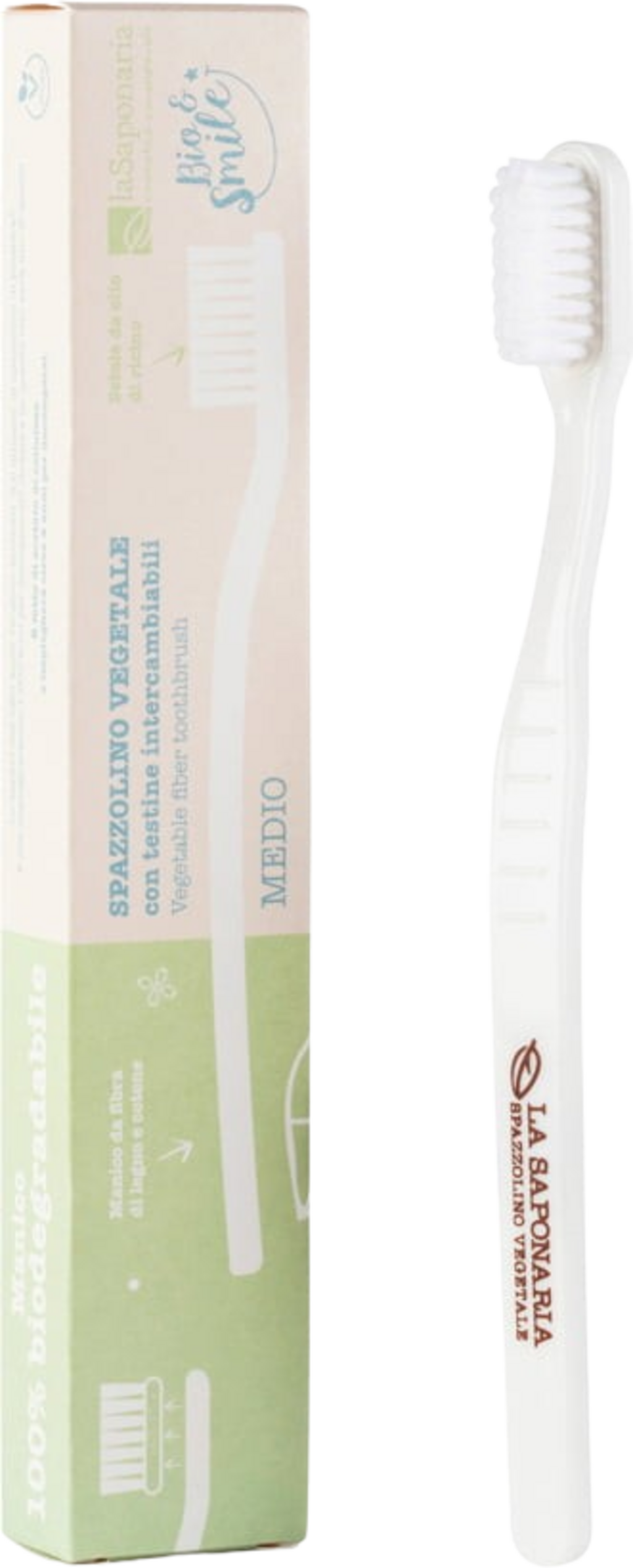 Denna miljövänliga tandborste består av naturliga och förnybara råvaror. Den är perfekt för optimal tandhygien. Handtaget är tillverkat av vedmassa och bomullsflingor. Borsten av ricinolja.
