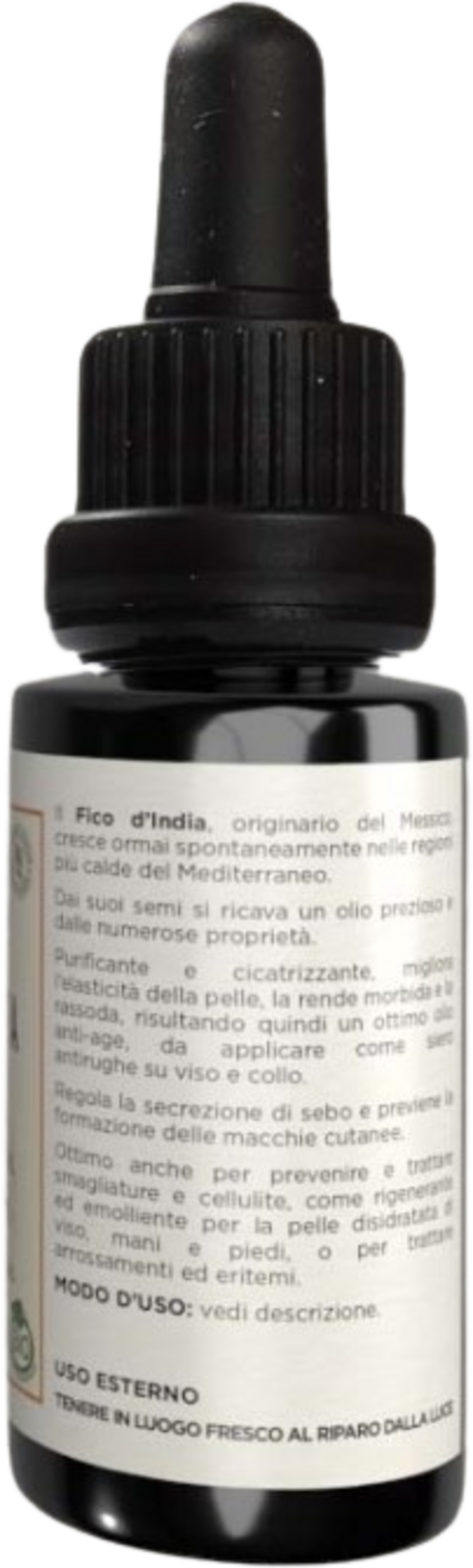 Fikonkaktusen kommer ursprungligen från Mexiko, men finns nu också i mycket varma medelhavsområden. Den dyrbara olja extraheras från fröna som har många egenskaper: de klargör och främjar hudens elasticitet. Detta gör den perfekt som ett anti-rynkserum för ansiktet och nacken. Oljan reglerar också talgproduktionen och kan användas för vård av ärr eller celluliter. Den har en regenererande och mjukgörande effekt och är lämplig för händer, fötter och kroppen.