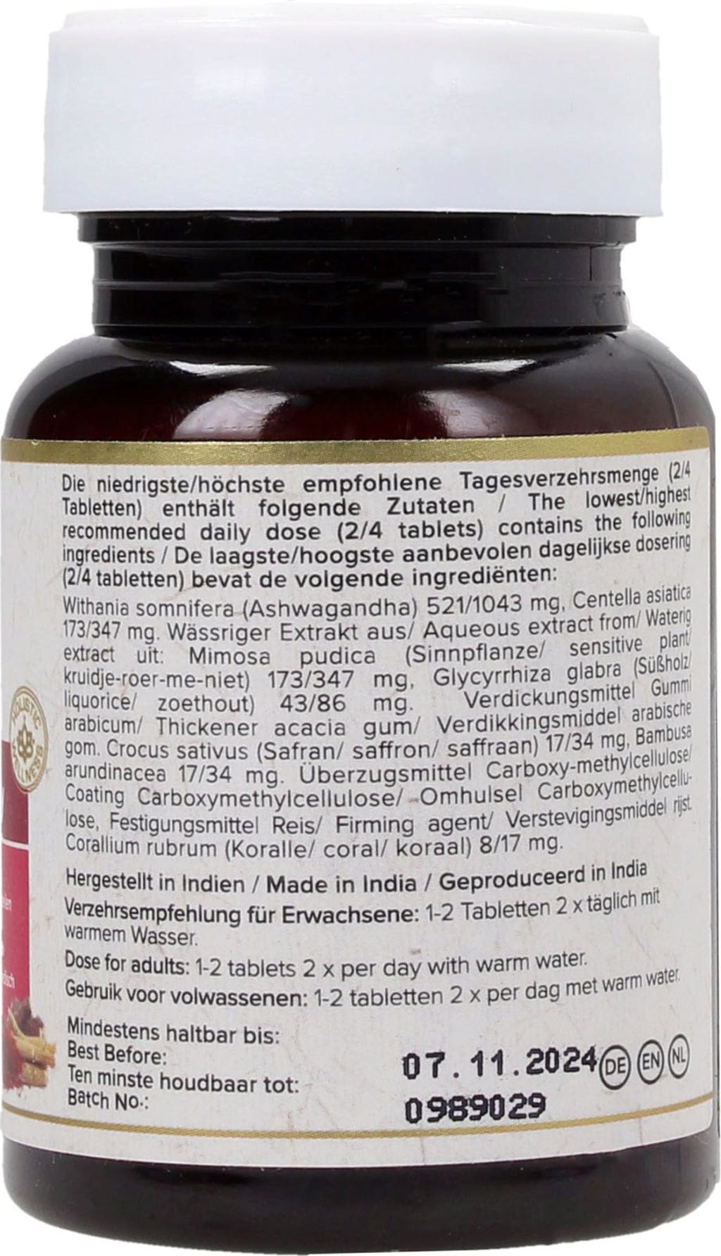 Innehåller vinterkörsbär, sinnplanta, gotu kola, lakritsrot och korallpulver.