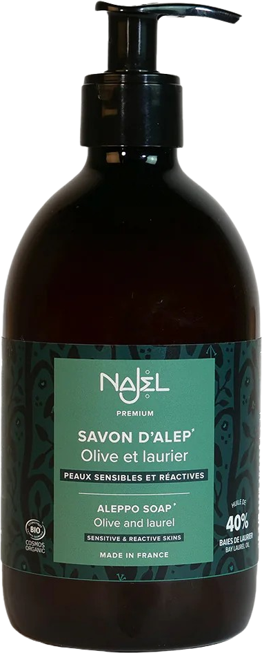 Denna flytande Aleppotvål erhålls genom varmförtvålning av två vegetabiliska oljor som också utgör riktig Aleppotvål i fast form enligt dess traditionella recept: olivolja och lagerolja. Den traditionellt tillverkade rengöringsprodukten ger näring och skyddar huden samtidigt som den ger smidighet. Tack vare den extremt höga andelen lagerolja är tvålen särskilt lämplig för känslig, torr hud och mjälligt hår och kan ersätta din vanliga duschgel eller schampo.