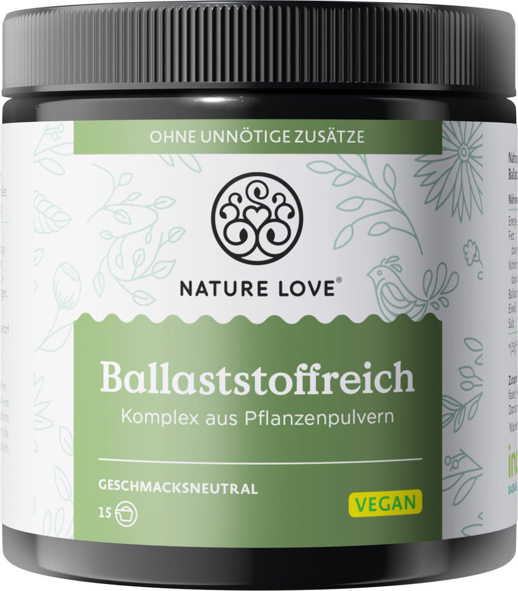 33 % Mischung aus Pflanzenpulvern[1] (Baobab, Fiber från akacia), Havrefibrer, äppelfiber, Inulin, Psylliumskalspulver, Dadelpulver, linmjöl, Fänkål