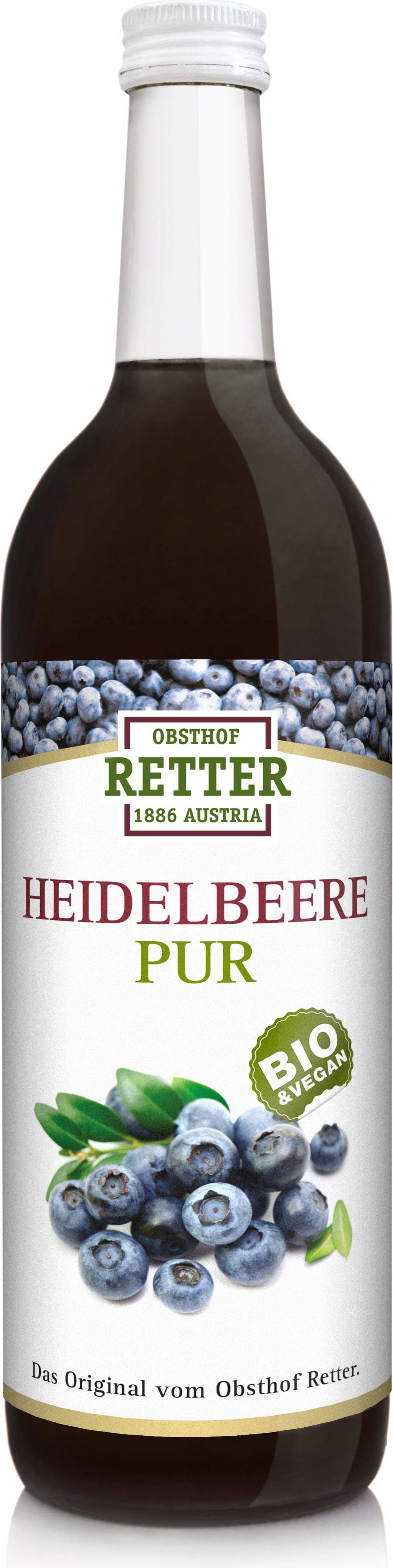 Endast helt mogna blåbär från de bästa platserna används till saften. 100% BIO naturliga icke-koncentrerade juicer är en rent naturlig produkt och produceras med hjälp av RETTERs specialutvecklade tillverkningsprocess.