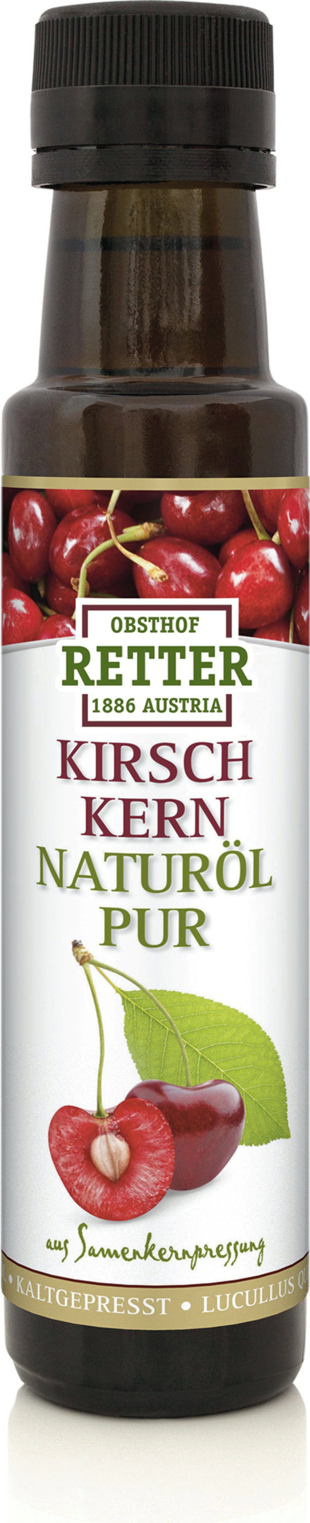 Ren körsbärsolja från Obsthof Retter är en särskild raritet och utvinns genom en rent mekanisk process genom kallpressning. Detta förfarande bevarar hela spektrumet av ingredienser och erbjuder därmed många positiva egenskaper.