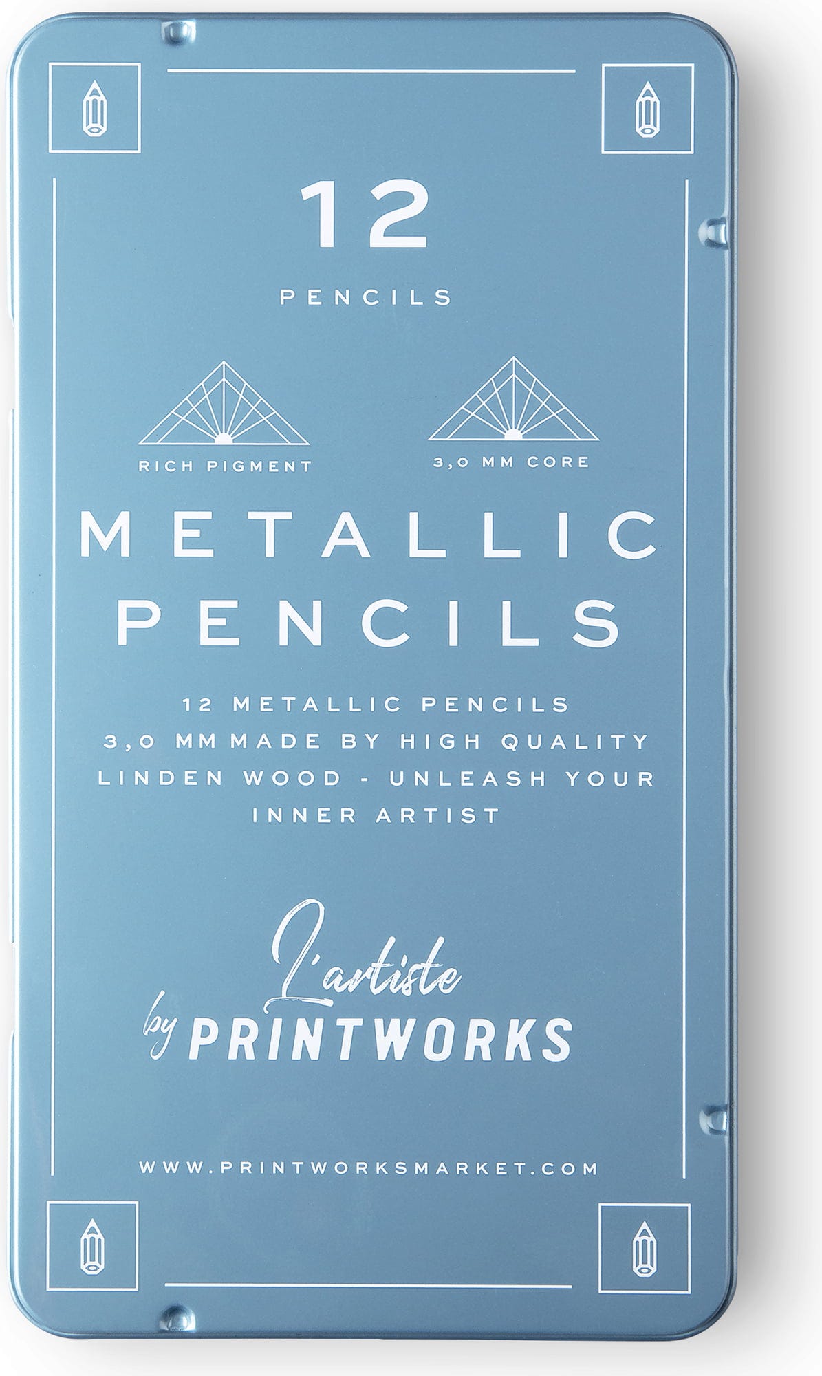 Detta set med 12 unika färgpennor i metalliskt utseende kommer att glädja både stora och små konstnärer. Pennorna passar inte bara för att måla, utan även för att skriva gratulationskort eller märka fotoalbum. Pennorna har en särskilt bra opacitet och en behaglig känsla.