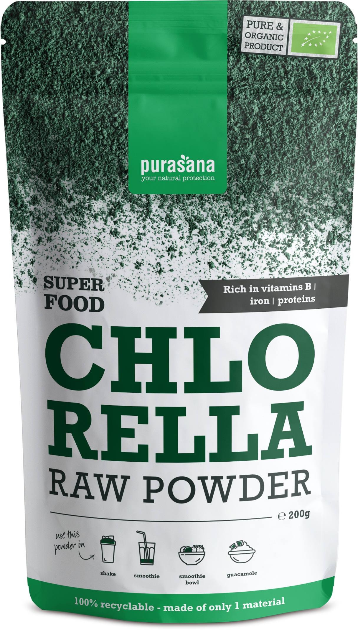 Purasana Chlorella pulver Ekologisk, 200 g