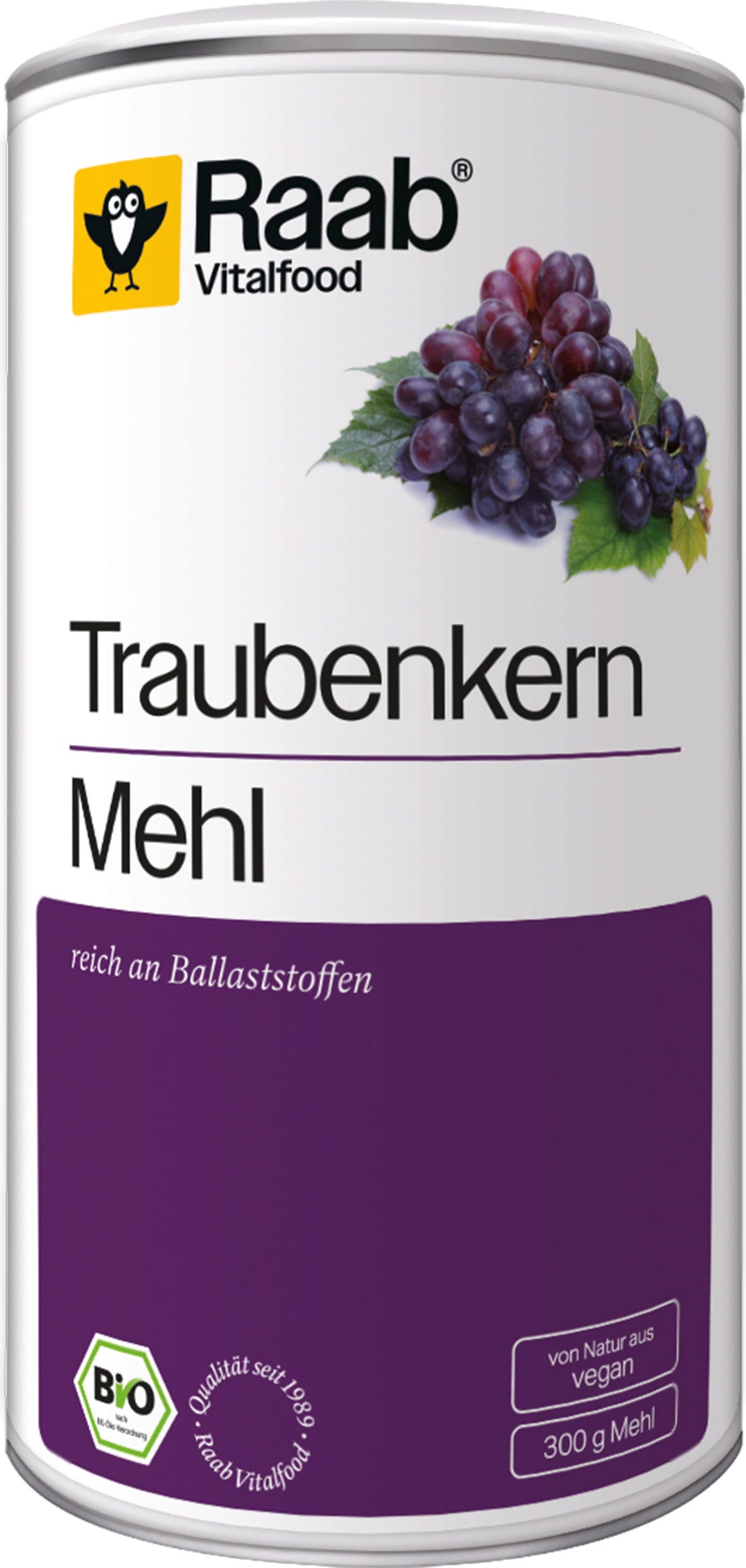 Detta mjöl framställs av presskakan från delvis oljade druvkärnor. Druvor och produkter från dem innehåller oligomeriska proanthocyanidiner. Raab Organic Grape Seed Flour framställs av fröna från solmogna druvor genom försiktig kallpressning.
