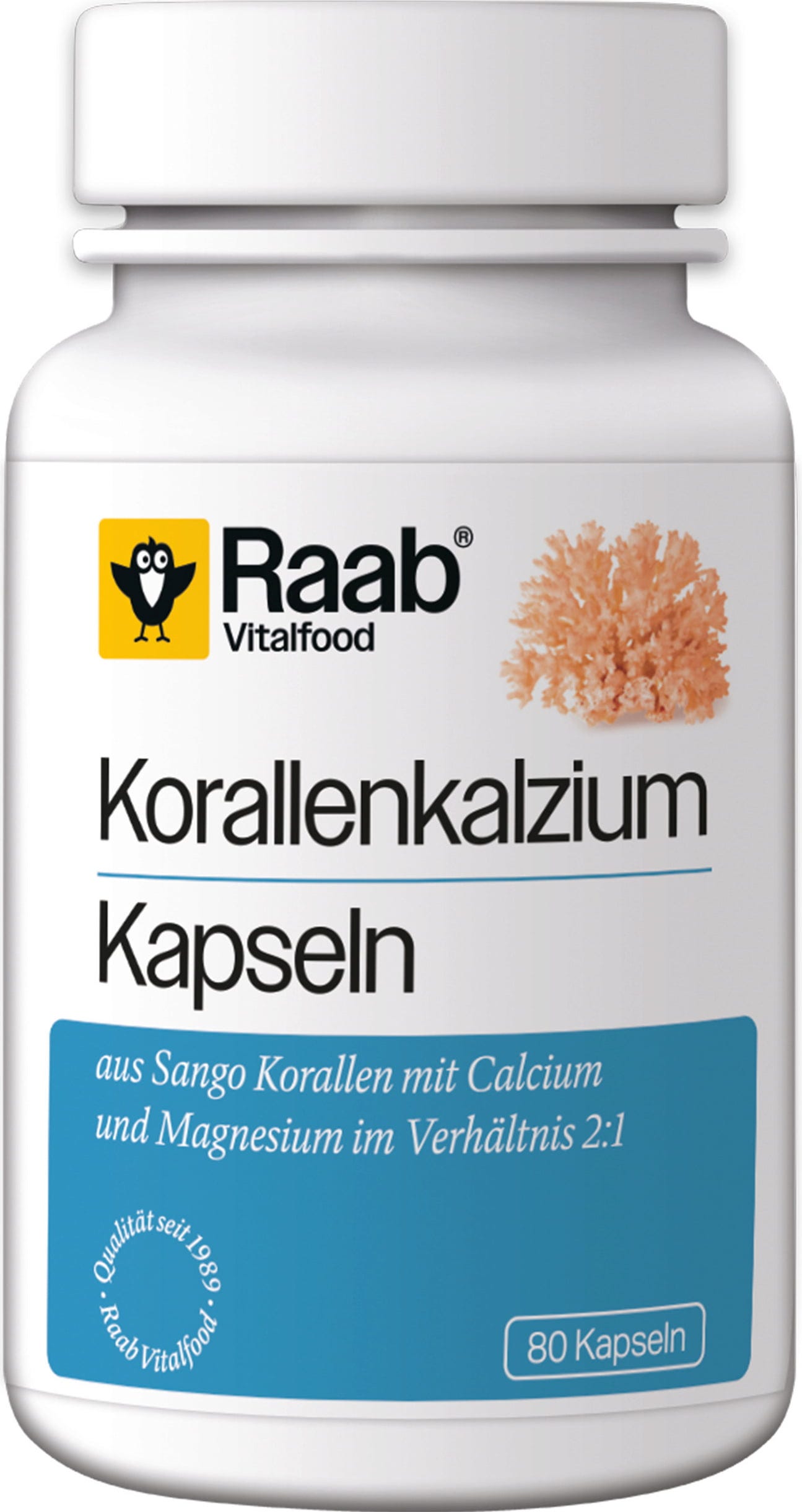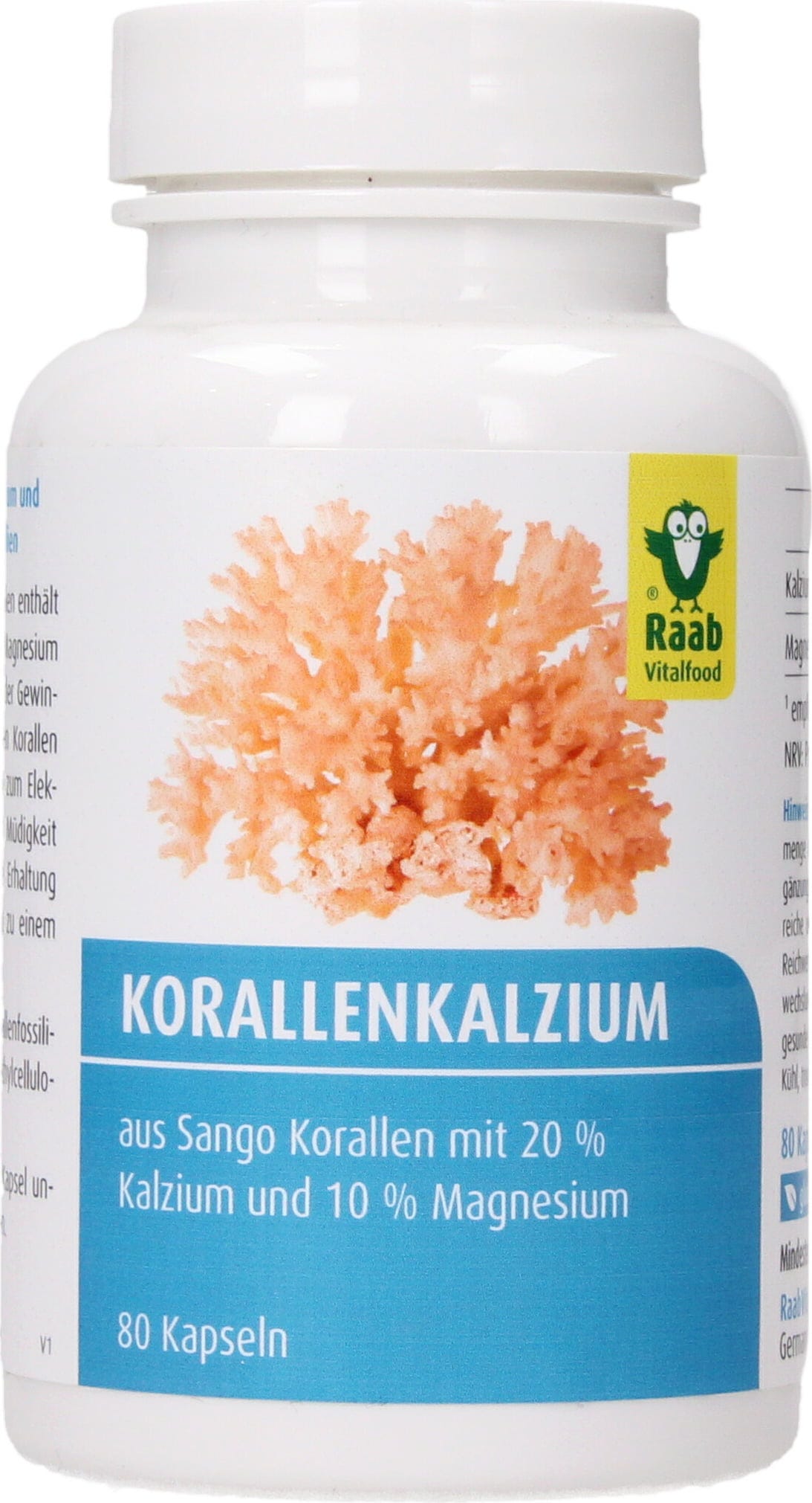 Raab Vitalfood Coral Calcium Capsules innehåller kalcium och magnesium från fossiliserade havskoraller av Sango-korallen - utan att äventyra levande koraller. Förhållandet mellan de två mineralerna är 2:1 - exakt vad kroppen kan absorbera. Kapselskalet består av vegetabilisk cellulosa.