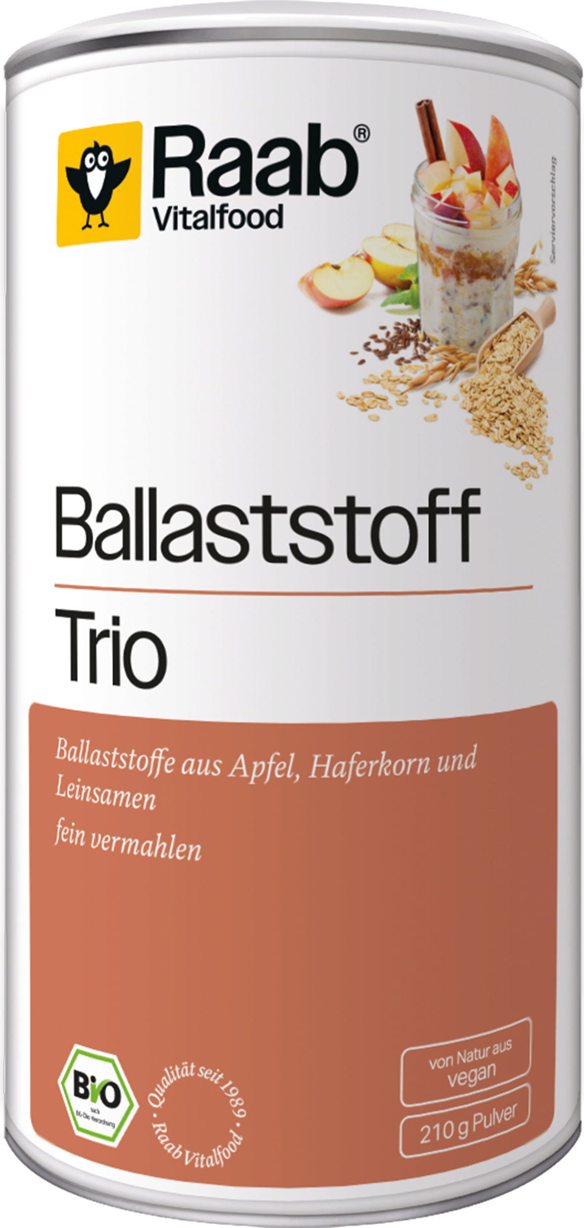 En frukostgröt kan snabbt och enkelt tillagas med Raab Kostfiber Trio. Tillsätt 15 g av pulvret tillsammans med 5 msk havreflingor och ett rivet äpple i ca 200 ml (växtbaserad) mjölk. Låt svälla i 5 minuter och avnjut kallt eller koka kort för en varm gröt.