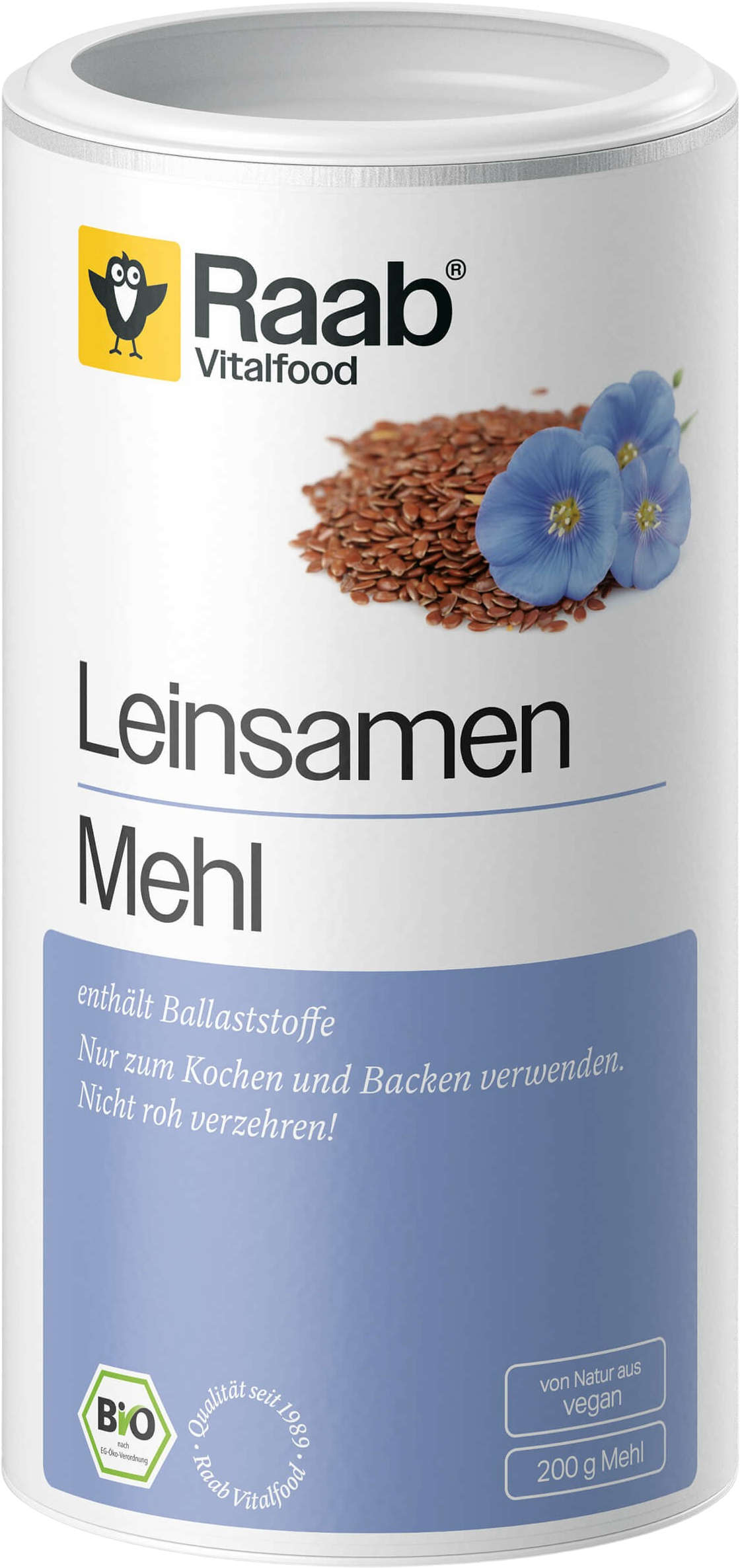 Raab Vitalfoods ekologiska linfrömjöl har ett högt fiberinnehåll, är rikt på vegetabiliska proteiner och innehåller naturligt kalcium och järn. Linfrömjölet har en god, lite nötig smak.