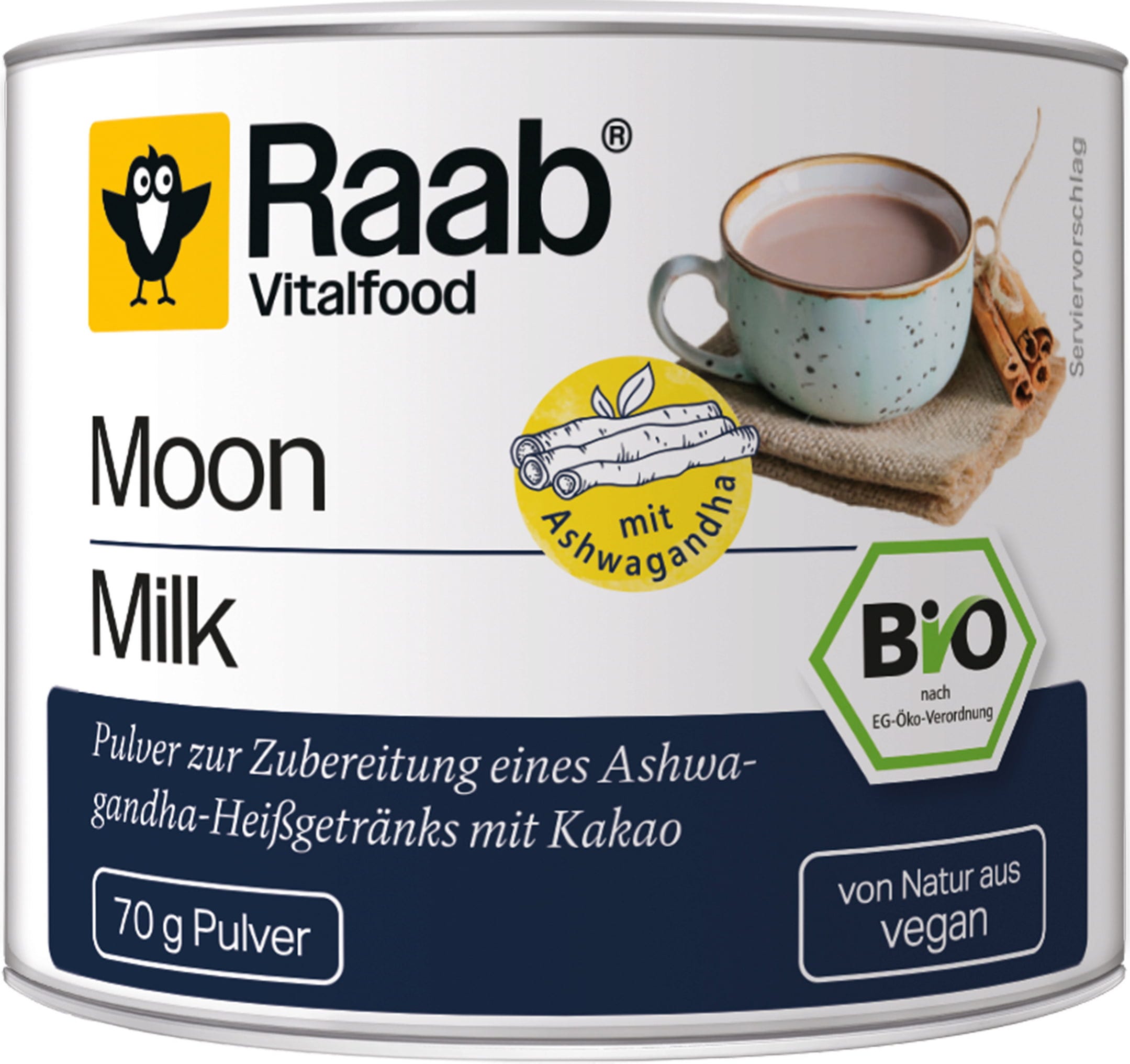 Att krypa in i en filt, låta tankarna vandra och njuta av en kopp varm choklad. Under de kalla vintermånaderna är en sådan kvällsritual oumbärlig. Den chokladiga, söta Moon Milk från Raab Vitalfood kombinerar den söta tonen av kakao med smakrika kryddor som kardemumma, kanel och vanilj. Det högkvalitativa ashwagandha-pulvret ger en subtil bitter smak.