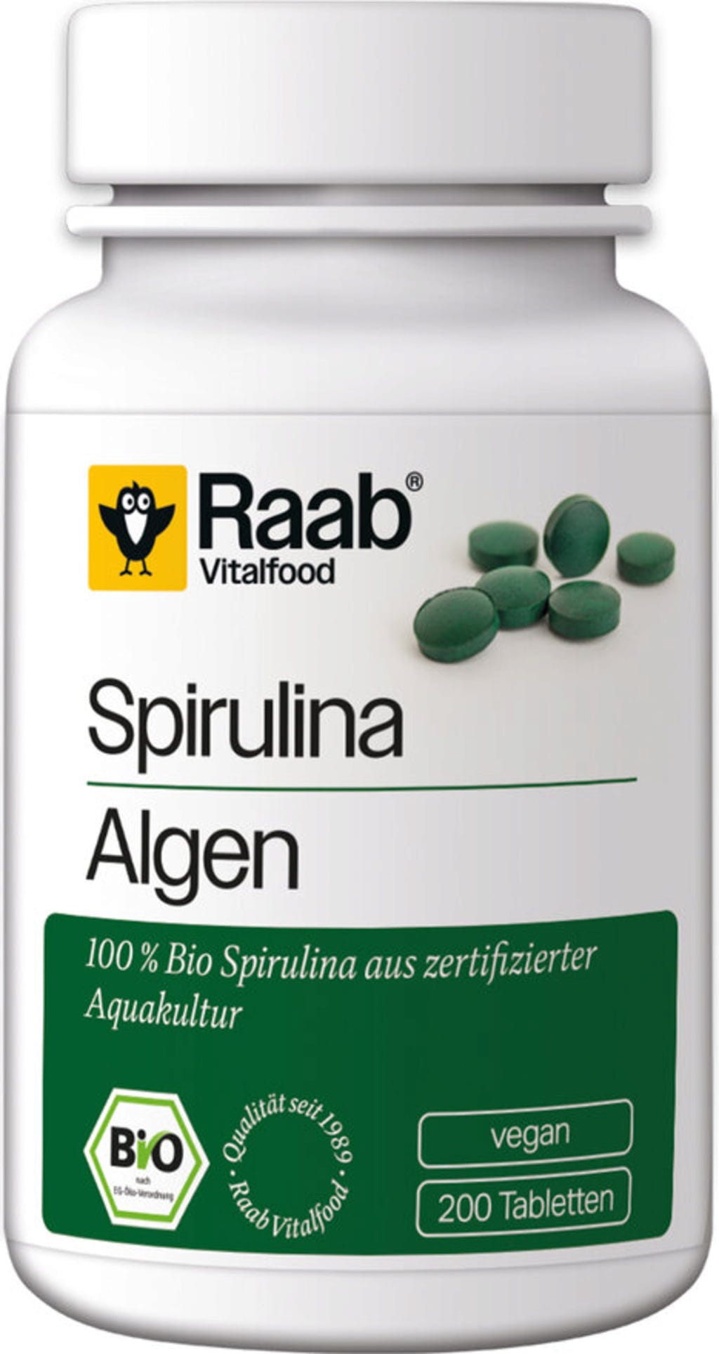 Raab Vitalfood Spirulinatabletter Ekologiska, 200 Tabletter